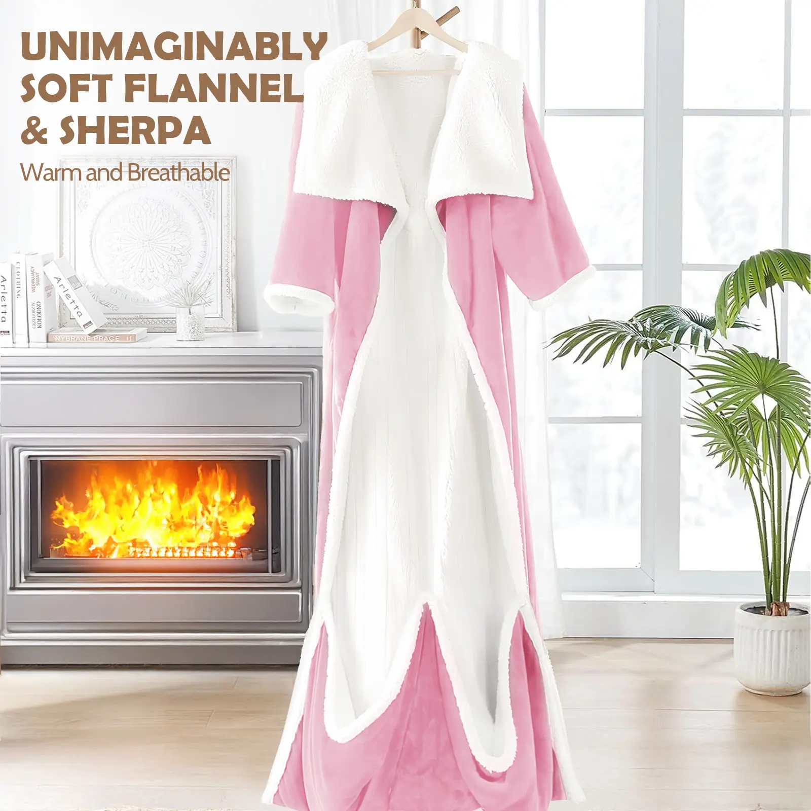 Premium blend of flannel and sherpa fleece, with a smooth and skin-friendly surface and a thick, warm inner layer. Cloud-like fluffy texture, lightweight without feeling oppressive, providing extreme comfort even during long hours of use—combining warmth with ultimate coziness.
