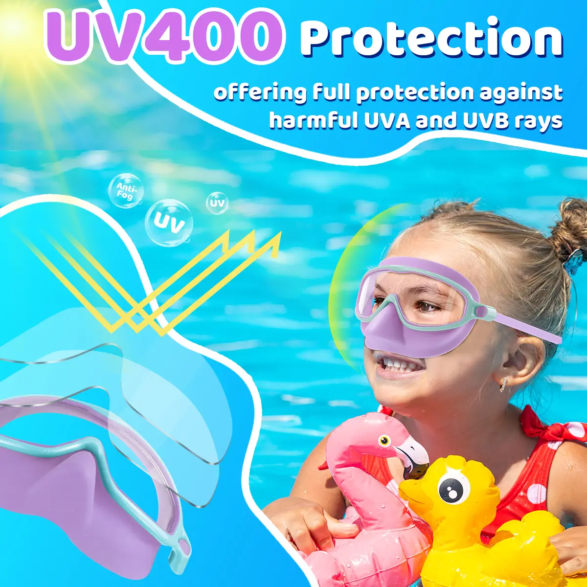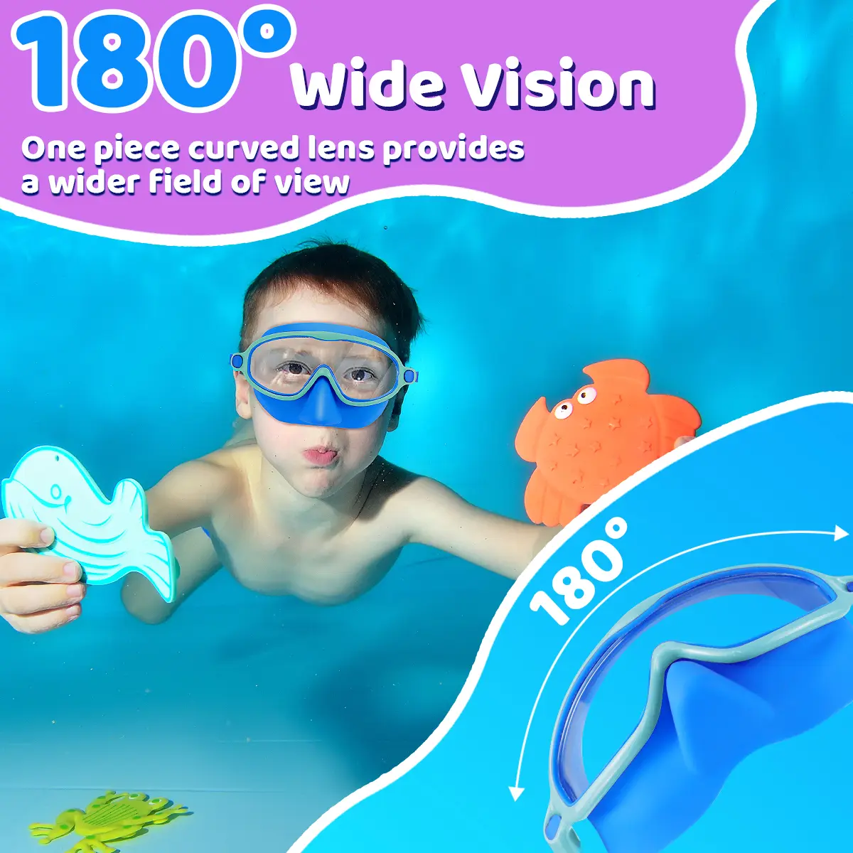 ·Wide View: Enjoy a panoramic view underwater with quality anti-fog lenses that protect your child's eyes from pool water, sunshine, and harmful bright lights.