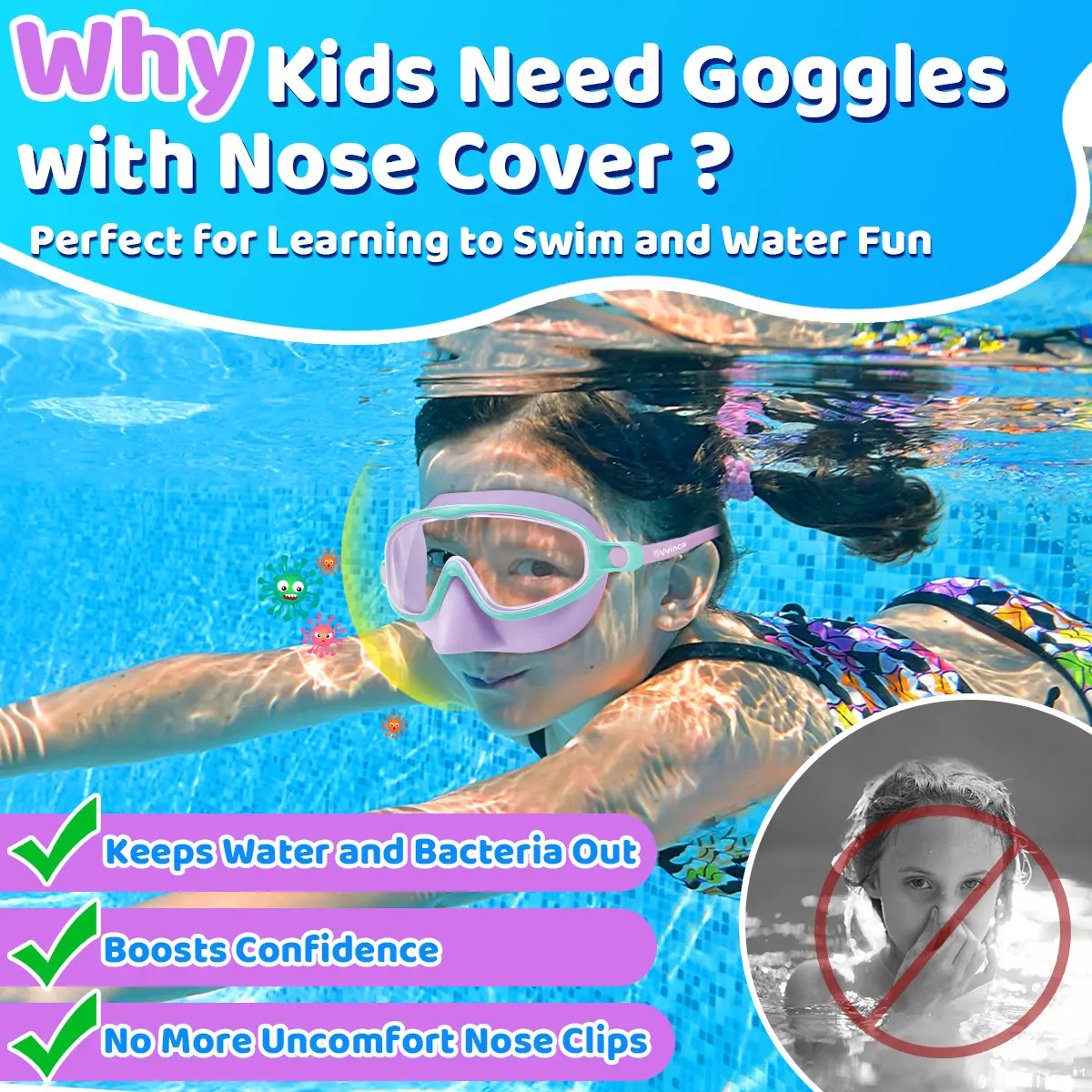 These Vvinca 2 Pcs Kids-Swim-Goggles with Nose Cover are designed to provide a comfortable and safe swimming experience for kids, helping them build confidence in the water.