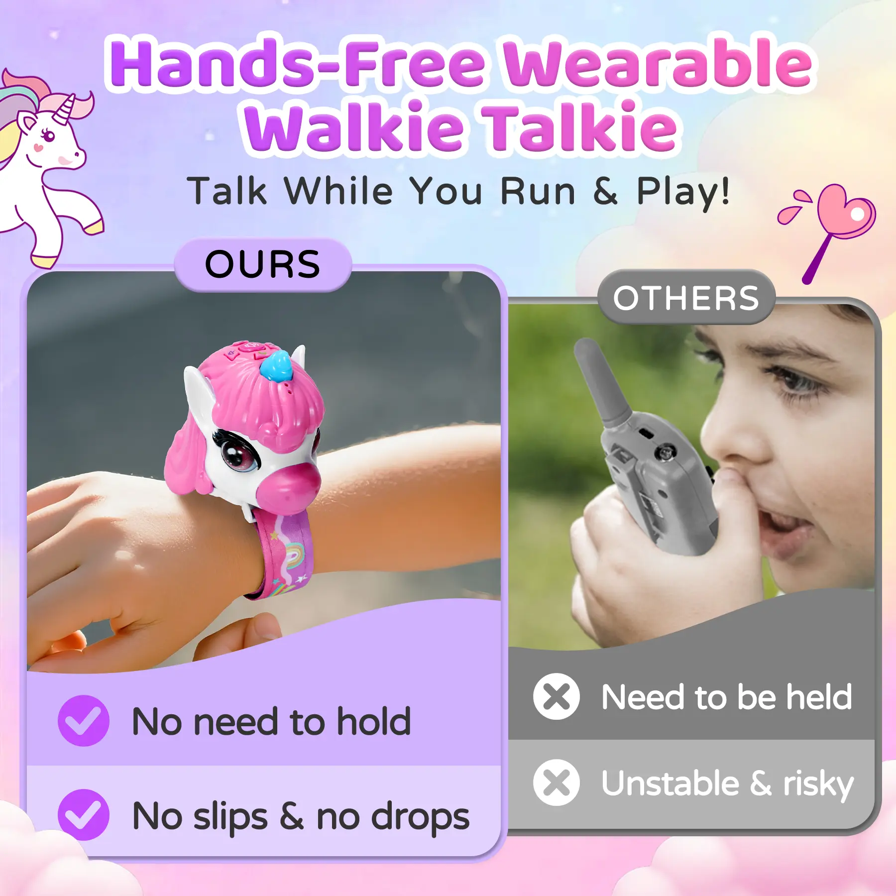 ·Hands-Free Fun: Our walkie talkie watches for kids design features a soft, adjustable strap, fitting comfortably on small wrists. No more lost walkie-talkie, just share fun with their new favorite walkie talkie watch, freeing kids' hands for riding and camping