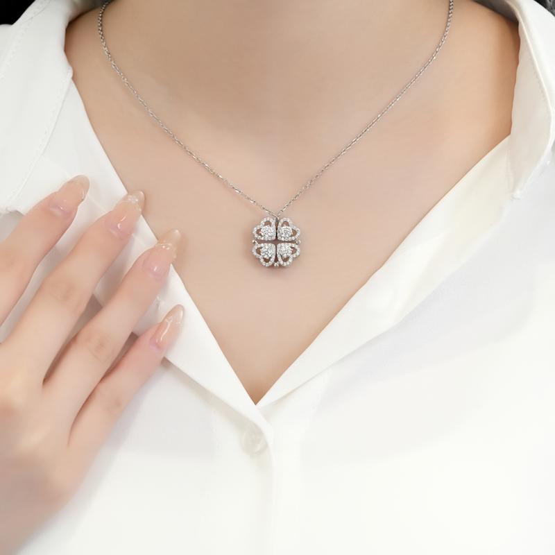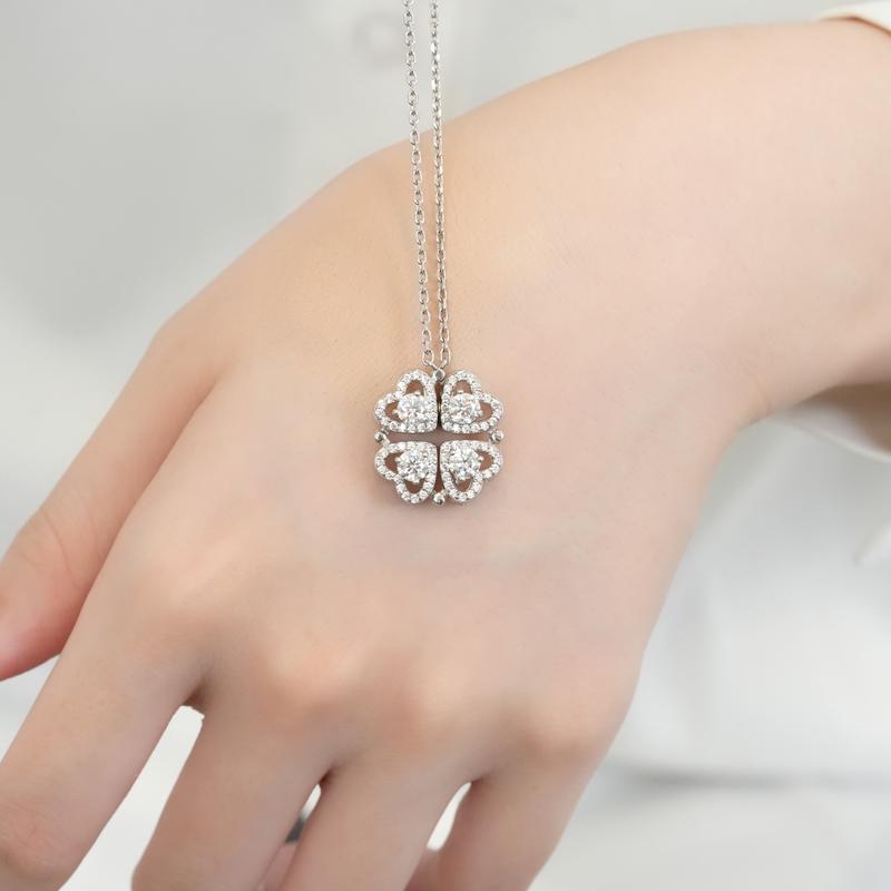 【#350 Magnetic Necklace】1.2CT Magnetic Clover Heart Necklace