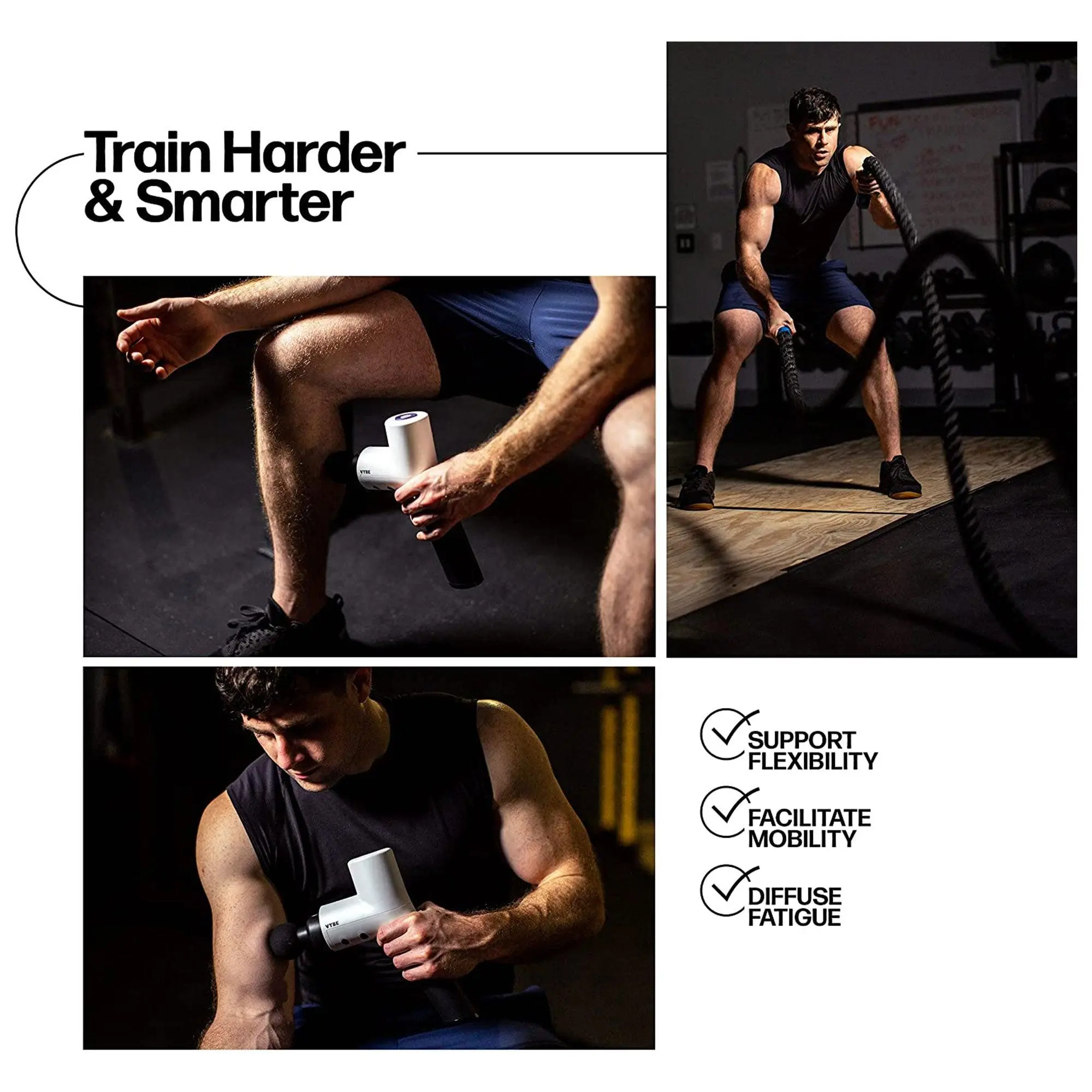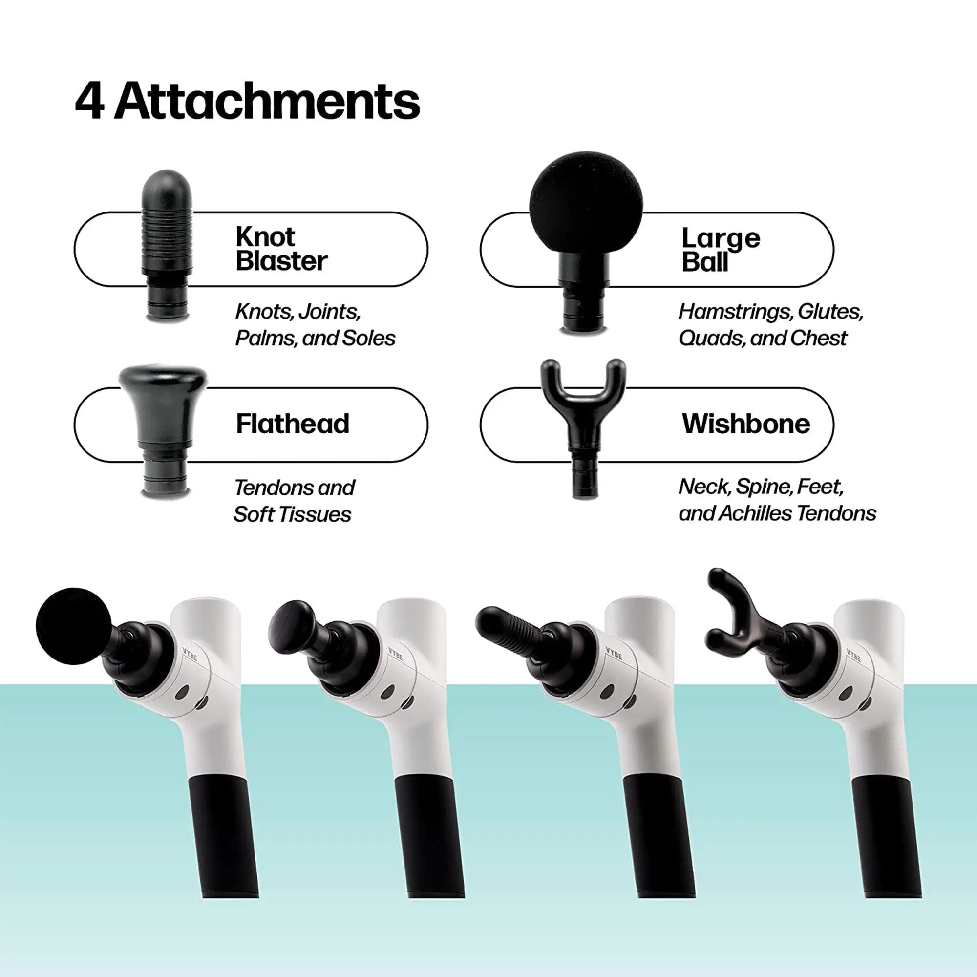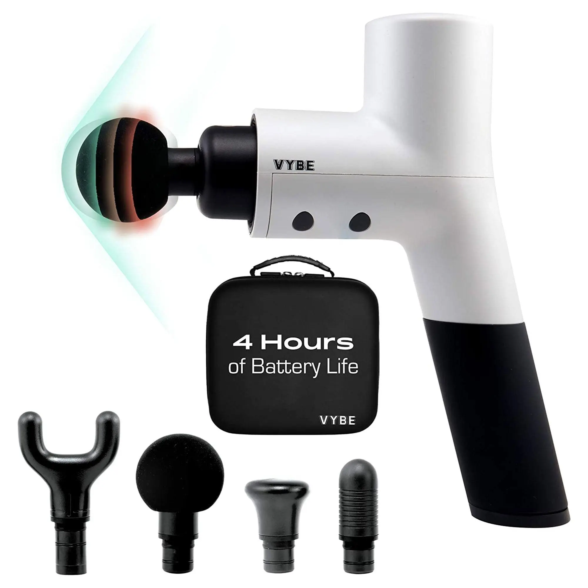 Efficiently get rid of the uncomfortable knots in your back, hamstrings, or neck areas with the Premium Deep Tissue Muscle Massage Gun from Vybe. The high-quality massager machine includes 4 interchangeable attachments that help you eliminate those aches and pains while relieving you of muscle stiffness related to headaches. The 5 adjustable speeds of the vibration break apart those knots to enhance recovery. Massage therapy helps muscle tension and has a broader impact on the general feeling of wellness and higher energy in the whole body. Including a knot blaster, large ball, flathead, and wishbone, you'll be able to customize your recovery experience in the spaces you need it most. With a long, 4-hour battery life, you can use the premium machine through both warm-ups and cool-downs. Get the job done anywhere, anytime by taking your recovery massage gun on the go with the included travel case. The Premium Massage Gun from Vybe will bring life back into your muscles so you can resume your favorite activities without additional strain.