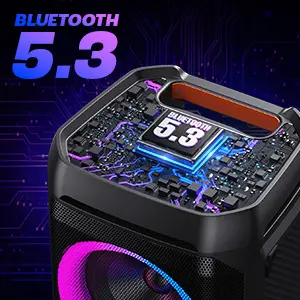 ·EQ Mode and Multiple Playback Modes:T11 large partybox has bass and treble modes (indoor/outdoor), just long-press the 'Triangular Tandem' button for 2 seconds to tailor your favorite sound. Enjoy deep bass, clear mids, and crisp treble.T11 portale bluetooth speaker supports Bluetooth 5.3, TF card, 3.5mm AUX audio cable and USB flash drive to transfer your favorite music.You can use it as a temporary conference bluetooth speaker. T11 party bluetooth speaker is ideal for birthdays, Christmas, Thanksgiving,New Year’s Eve party, Christmas party,Veteran’s Day jobsite,Valentine's Day,gym and indoor and outdoor activities