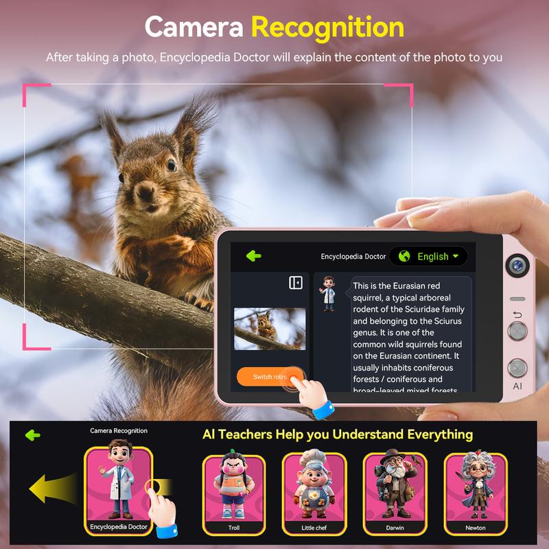 Advanced automatic focus ensures every picture is crisp and razor-sharp. The AI editor automatically enhances photos by adjusting lighting, color balance, and contrast for professional results.