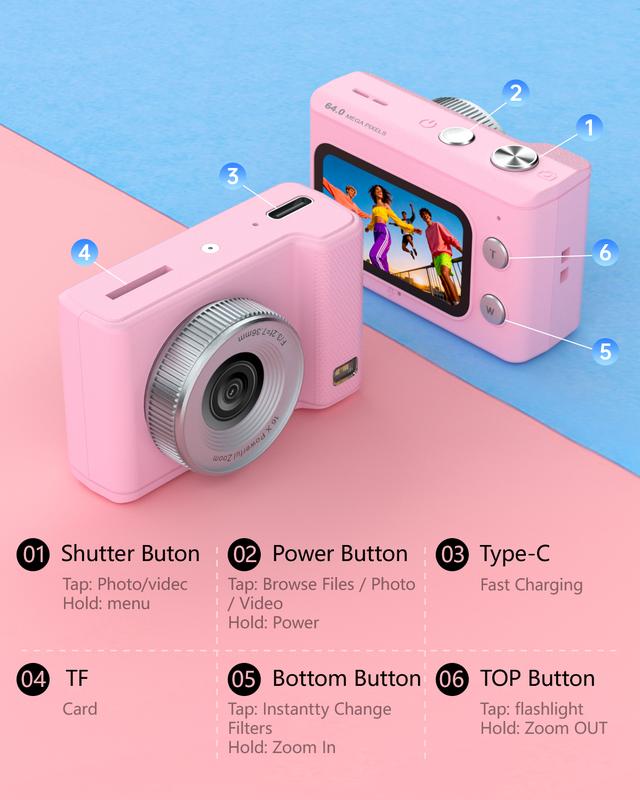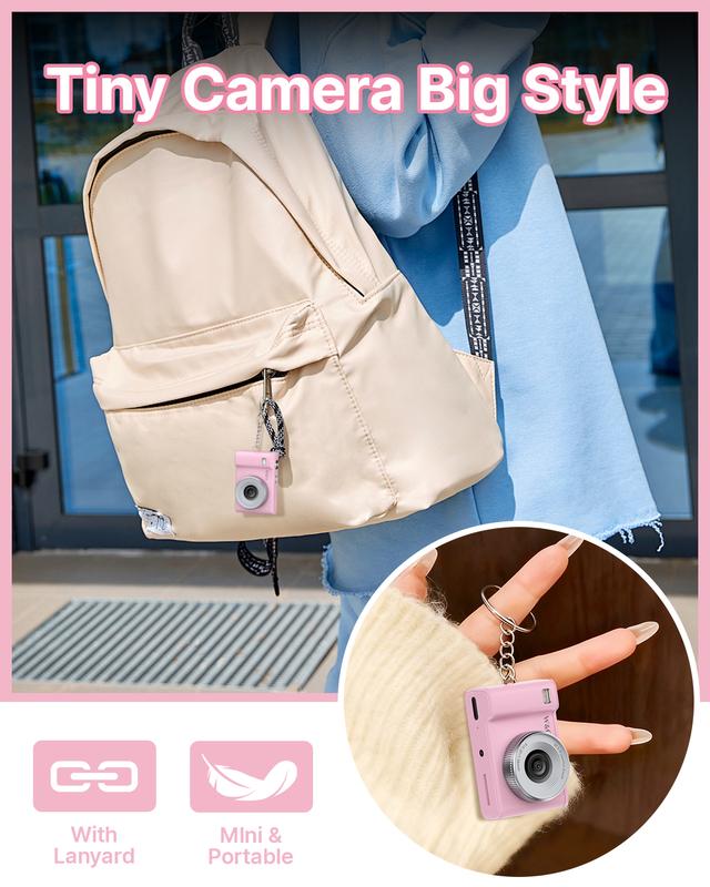 The W&O Mini Keychain Digital Camera is a pocket-size retro vlog camera. It features a vintage style, perfect for travel, concerts, and instant parties. This compact camera comes with a 32G card and a charging cable, making it ready for use. Ideal for kids who love capturing moments in a fun and stylish way.