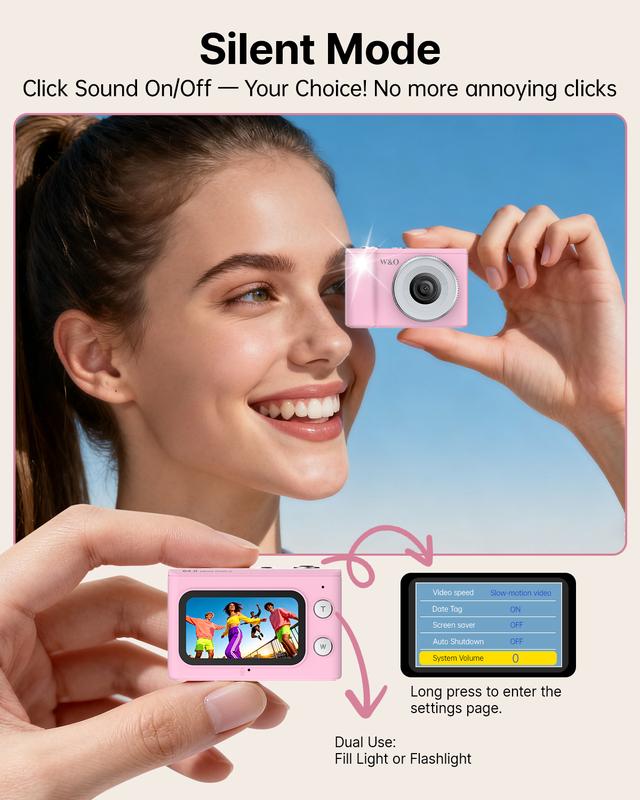 This camera is perfect for travel, concerts, and instant parties. Its compact size and retro style make it a fun choice for kids. Capture moments in a stylish and convenient way with the W&O Mini Keychain Digital Camera.