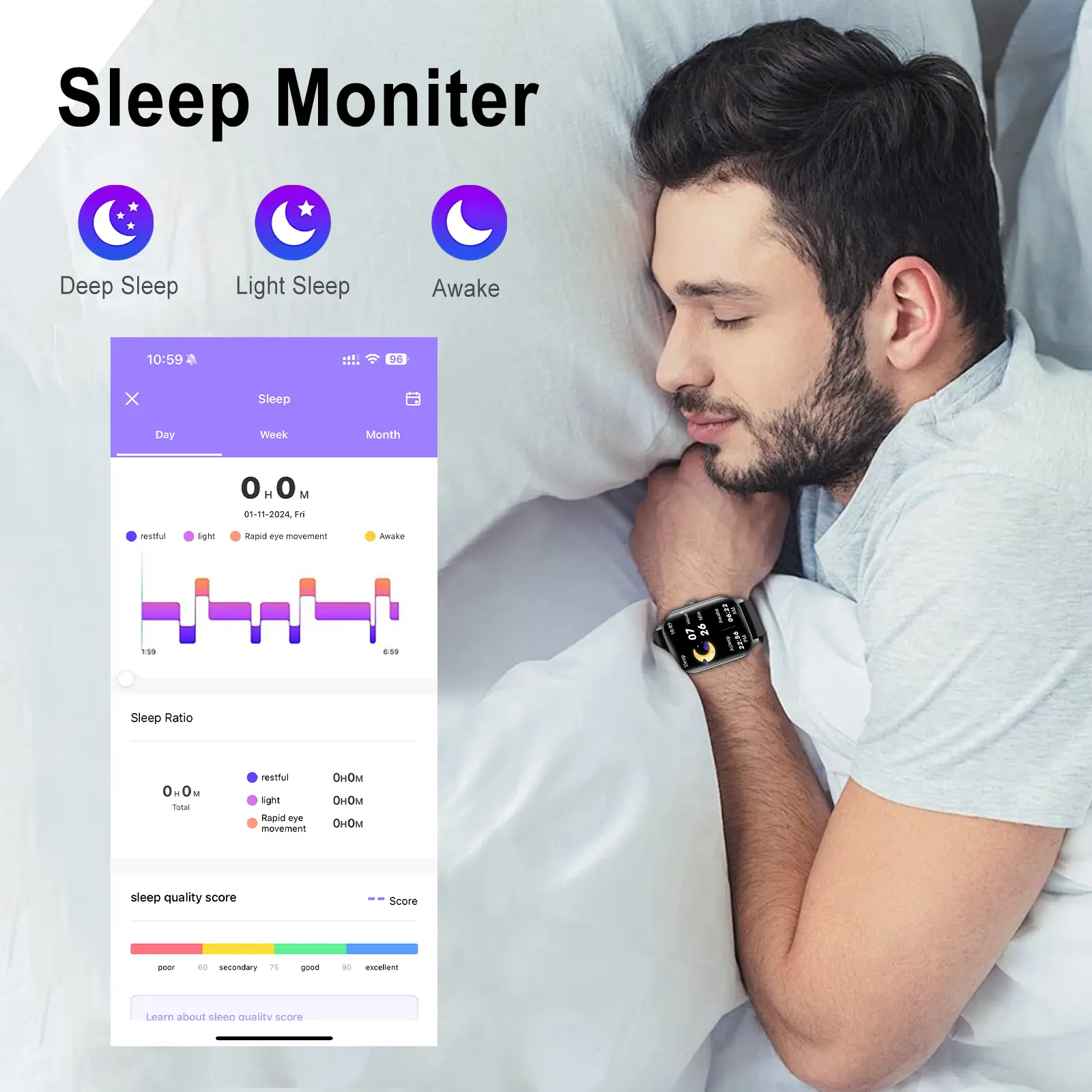 ·24/7 Health Monitoring: Tracks heart rate, SpO₂, blood pressure, and sleep.
