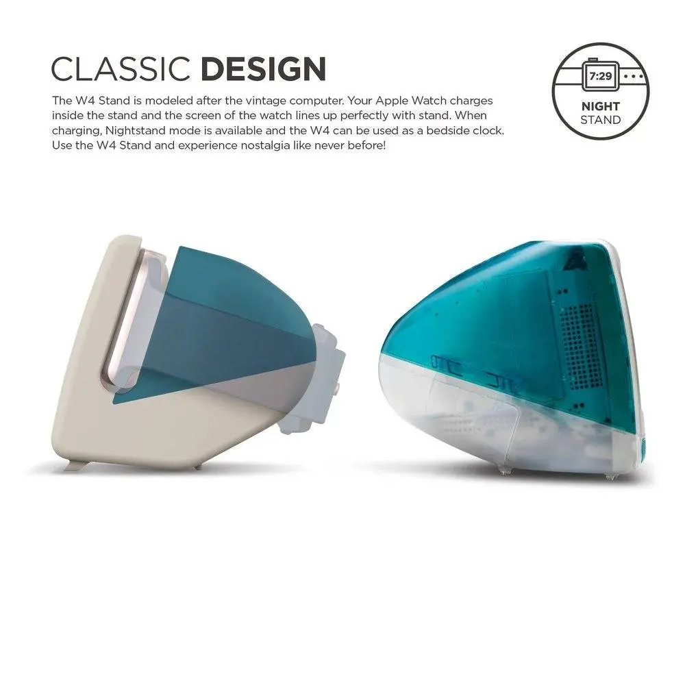 This retro stand was designed to look like the old 1998 iMac. When you place your Apple Watch in the stand, enjoy the nostalgic feel of using an older Mac monitor.