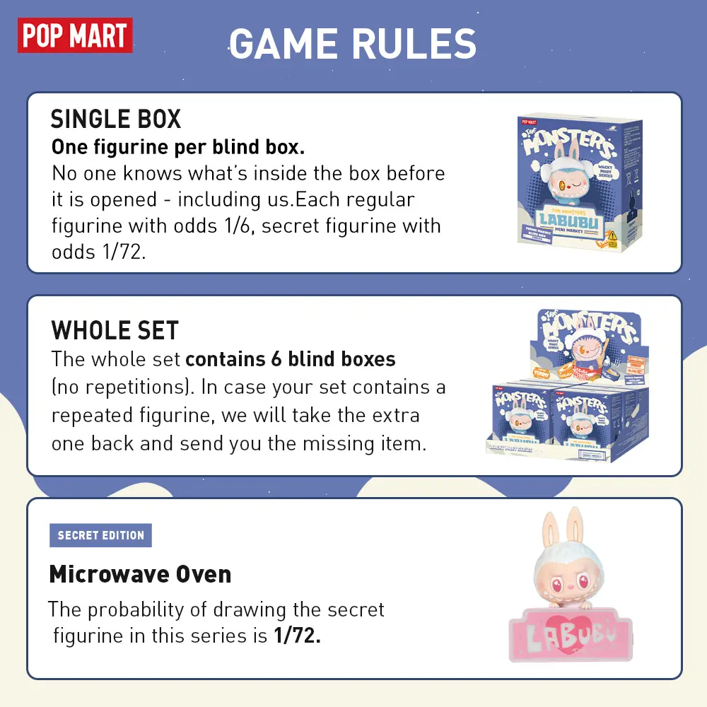 ·We also CANNOT guarantee that any purchase will definitely get the secret edition (please refer to the probability on product package).