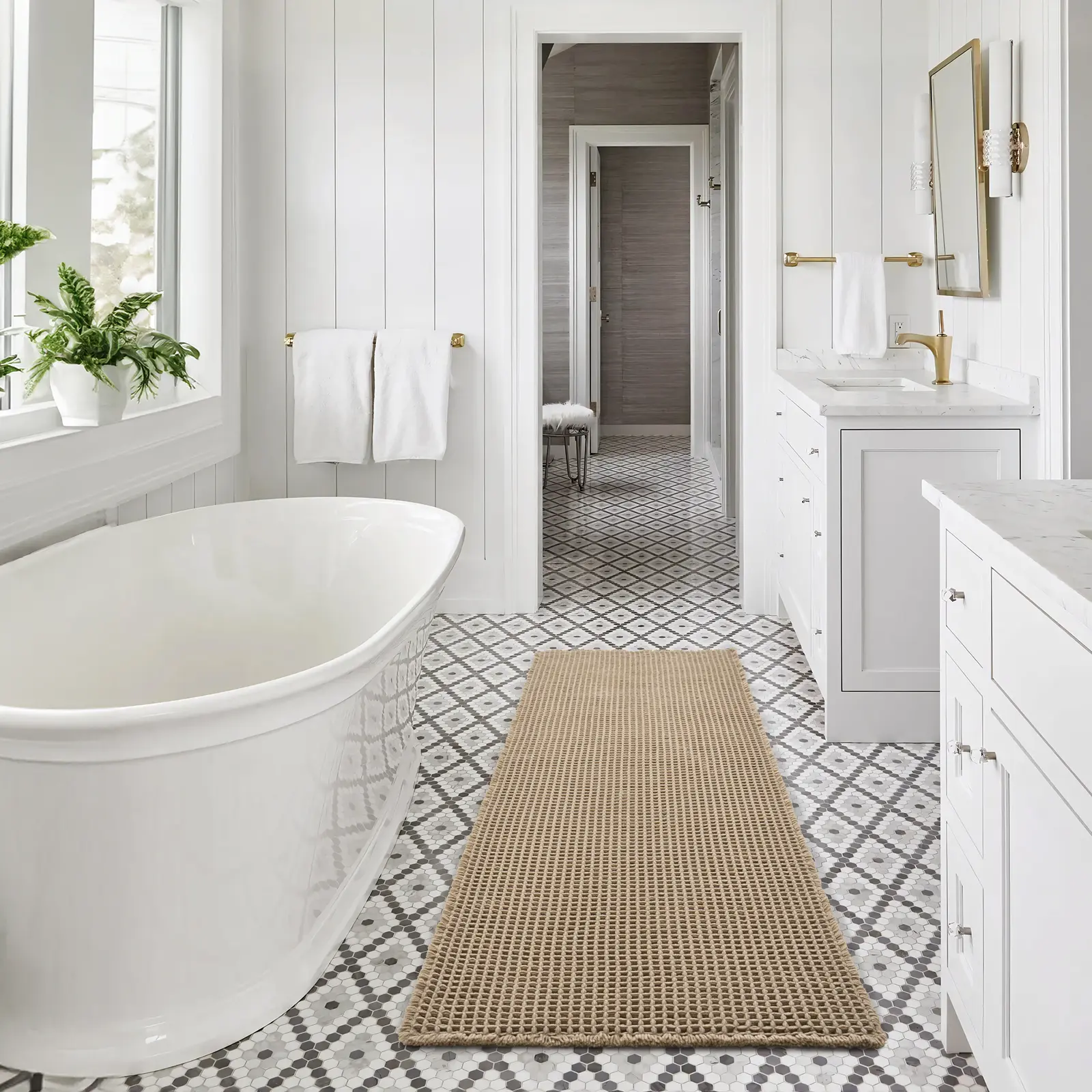 Love this rug it’s soft and absorbent and stays put. One of the best purchases for my bathroom.