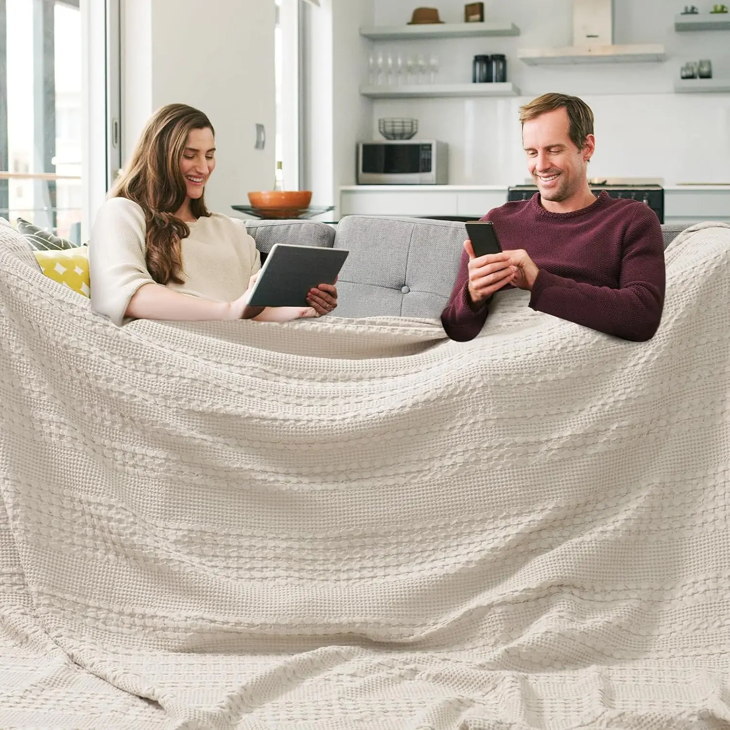 Exquisite Waffle Weave Design: This classic and stylish waffle design boasts a three-dimensional, puffy, and elegant appearance, crafted with precision in every stitch, showcasing exquisite woven craftsmanship. The special waffle fabric promotes air circulation, temperature regulation, and moisture absorption for ultimate comfort. In addition, this stylish and sophisticated blanket adds a touch of elegance to any room.
