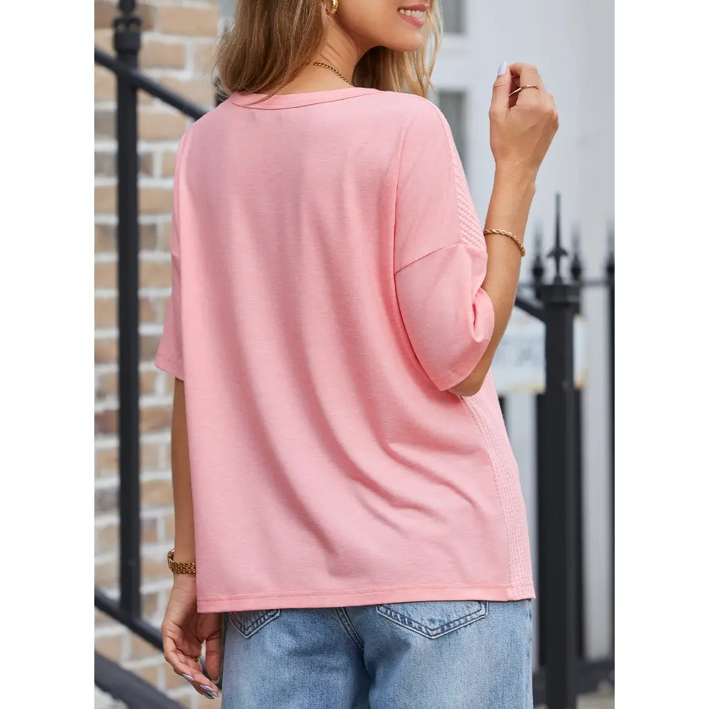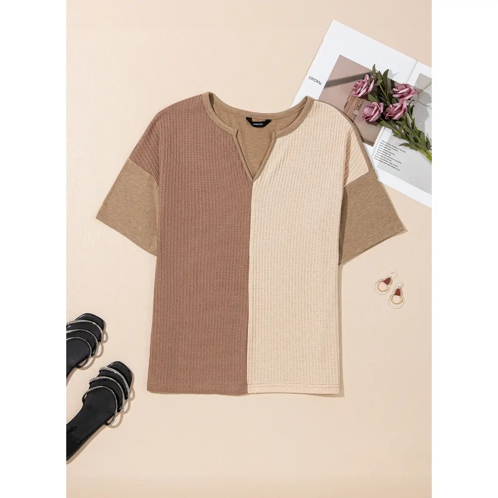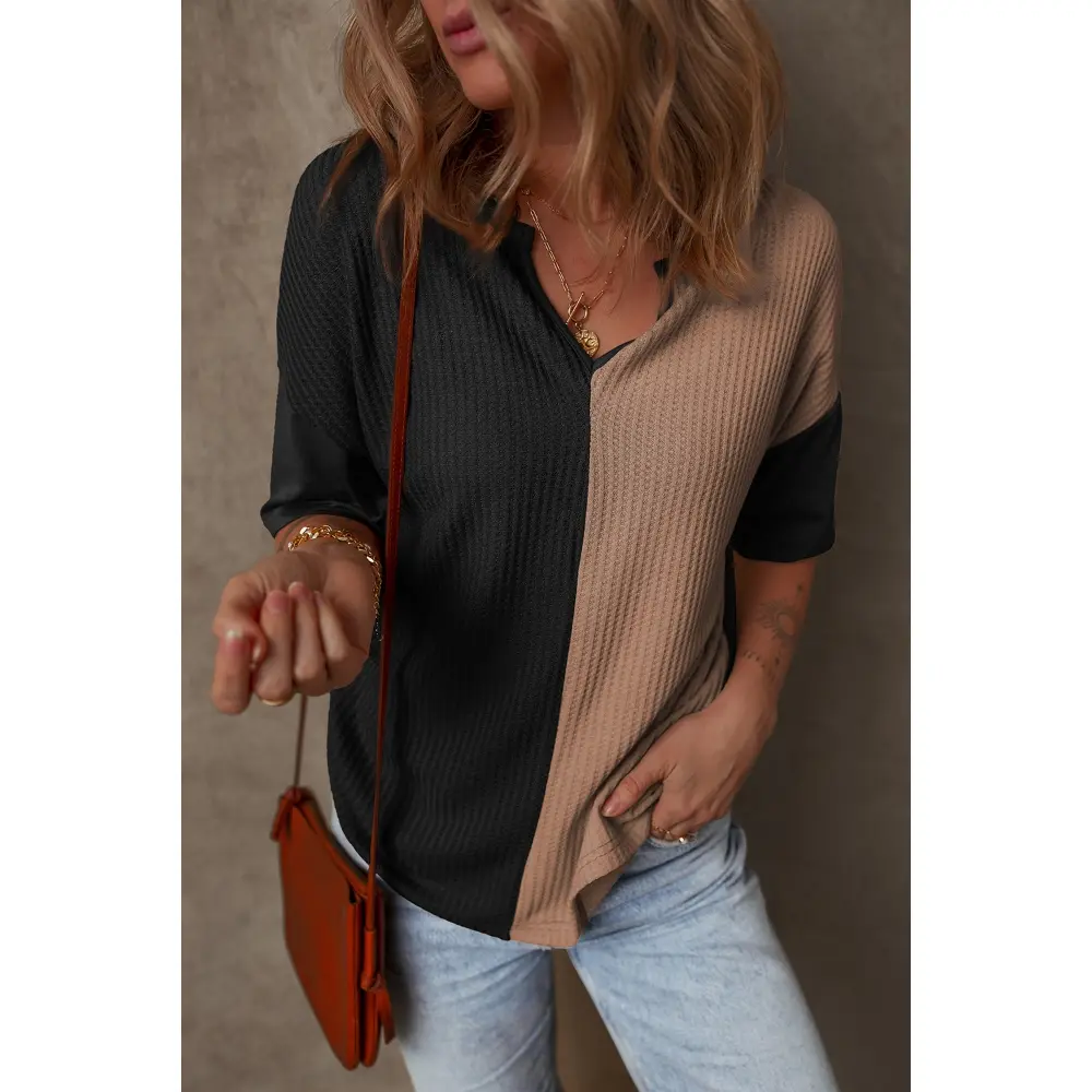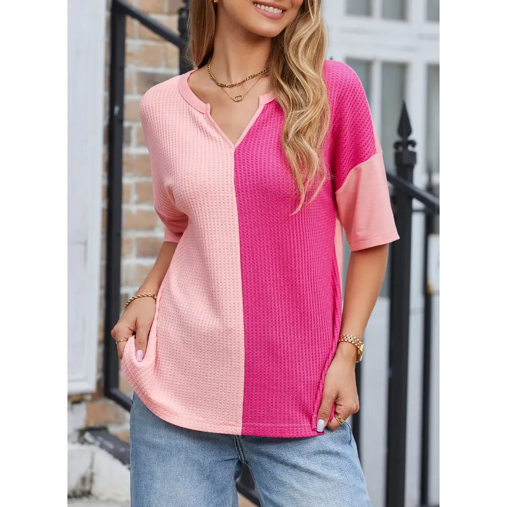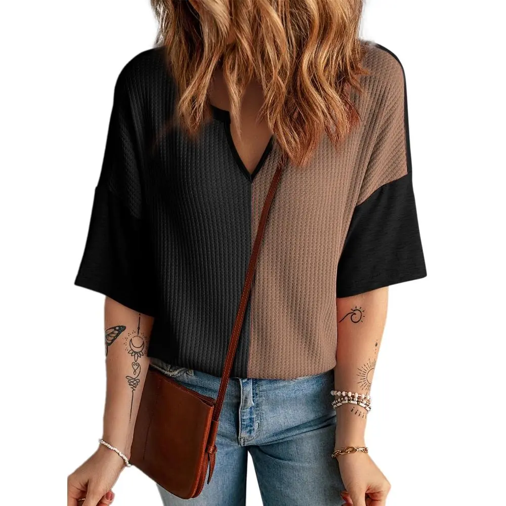 ·Feature: Waffle knit tops with v neck design, loose fit, patchwork, half sleeve shirts, basic tunic tops, fashion color block tees. A chic basic style can create many possible stylish combinations.Keep you trendy and eye-catching at any time and anywhere.