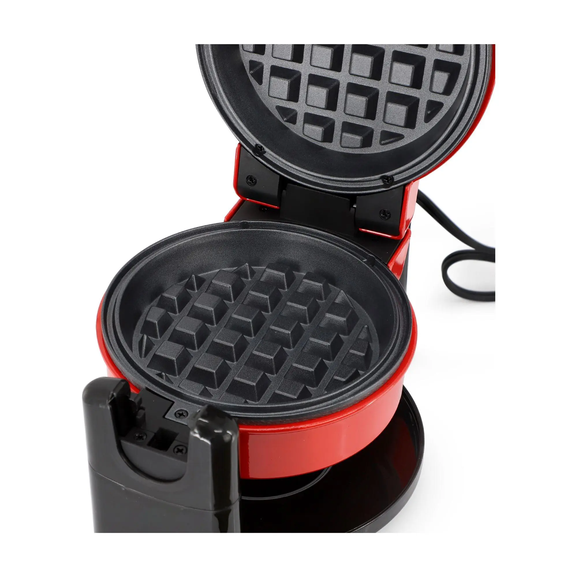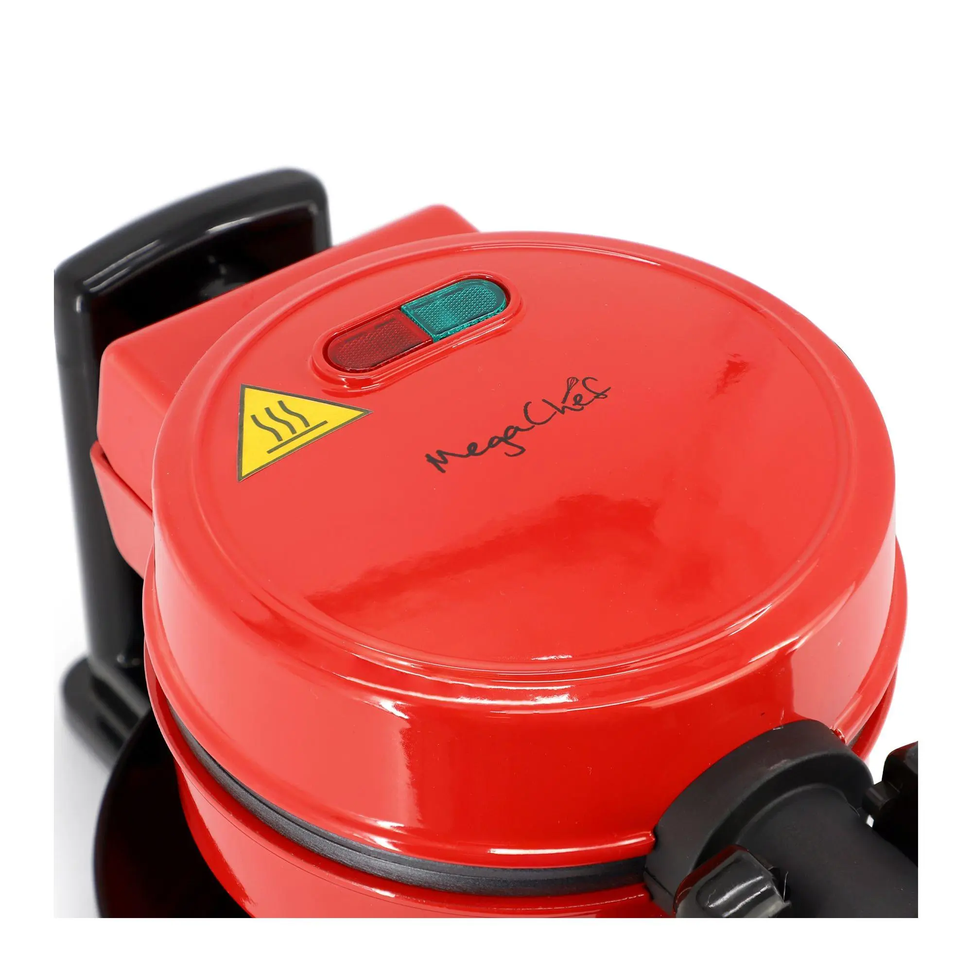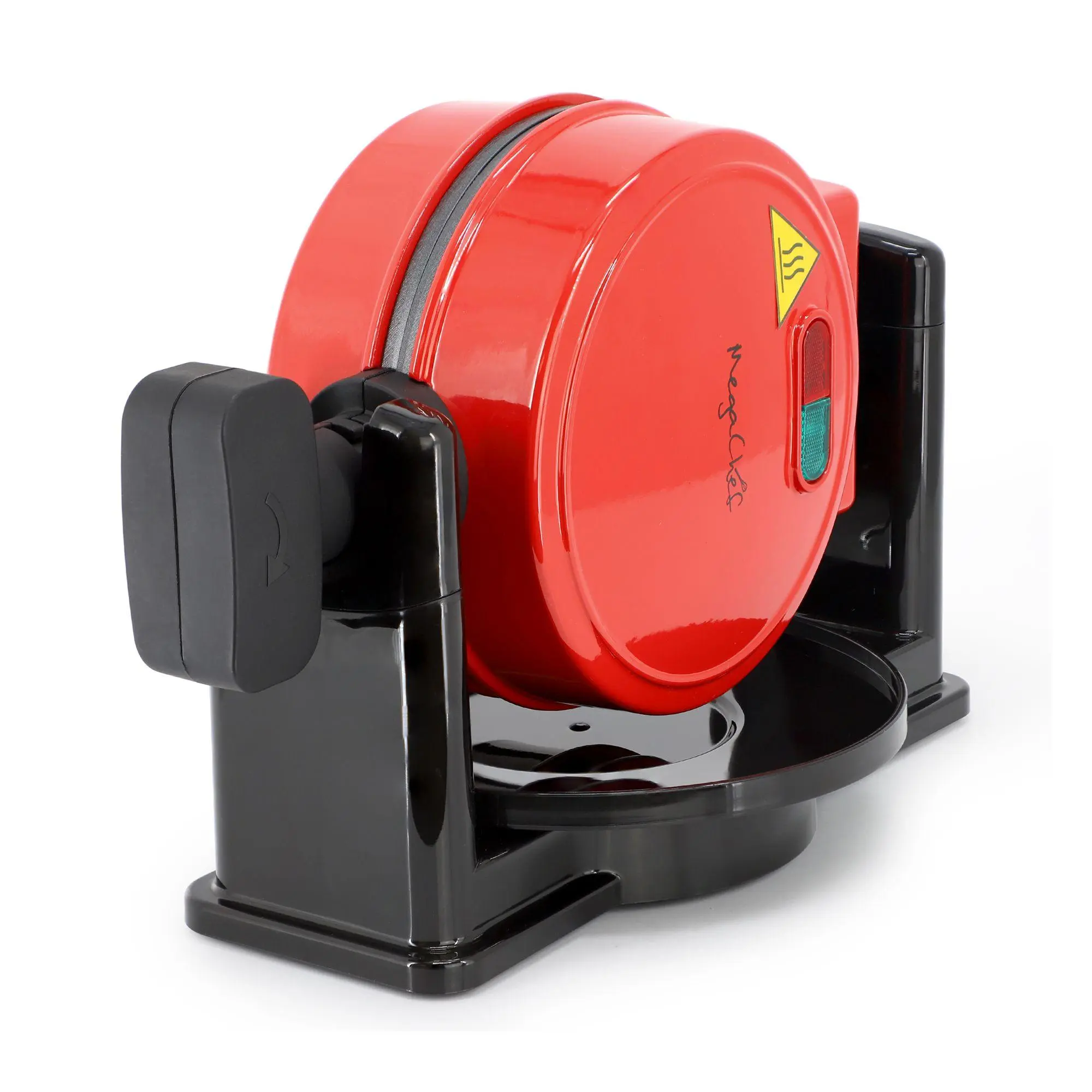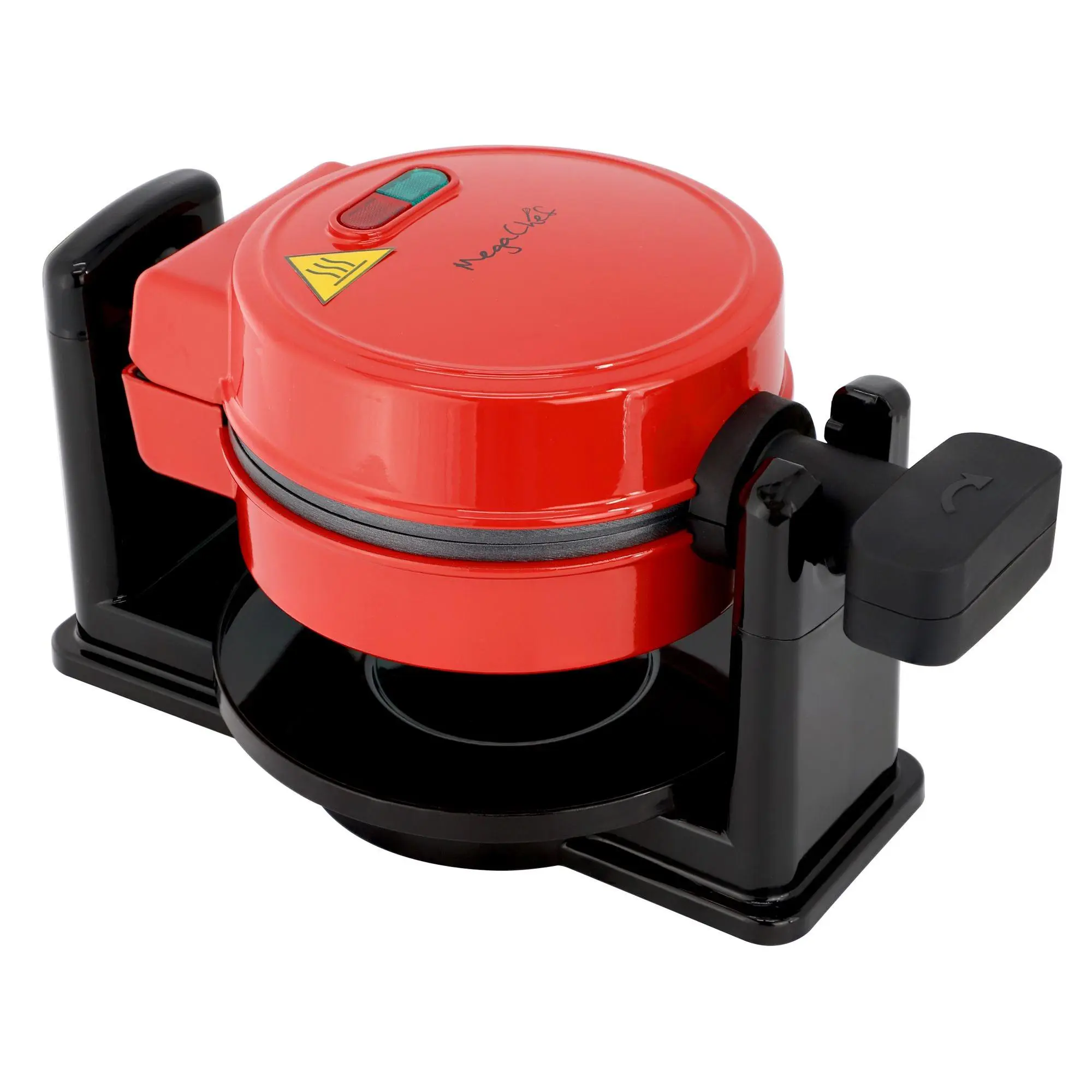 Looking to create crispy, golden waffles from the comfort of your kitchen? Look no further than the MegaChef Non-Stick Round Electric Flip 5" Belgian Waffle Maker in a vibrant red. This sleek and compact appliance features a 5-inch cooking surface, perfect for individual servings. The non-stick plates make cleanup a breeze, and the cool-touch exterior ensures safe handling. With a power cord measuring 31.5" and efficient heating at 520W, delicious waffles are just a flip away. From MegaChef.