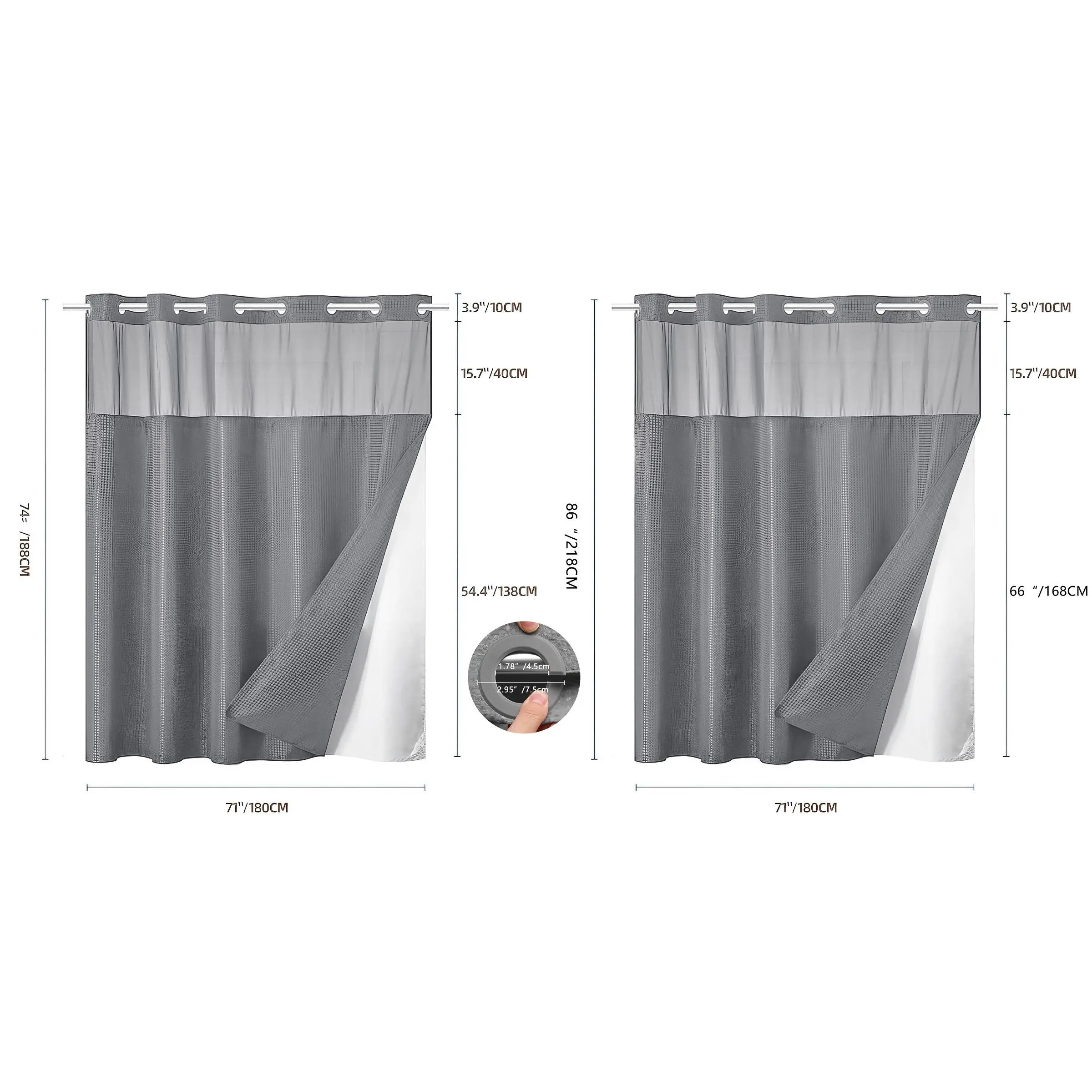 I bought 2 shower curtains in the same color! I love that you can unsnap the liner to throw in the washer to clean. They look amazing!