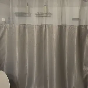 I love the fact that the shower curtain has a shower liner already connected. It’s easy to put up and very lightweight. I don’t recommend that you use it in the colds months due to it having a screen which would most be beneficial for summer days.