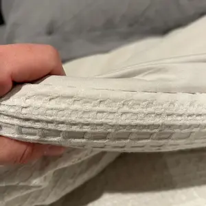 Our new down alternative comforter is so comfortable and cozy. My husband, who's an early riser was so in love with this product he stayed in bed much longer than usual!