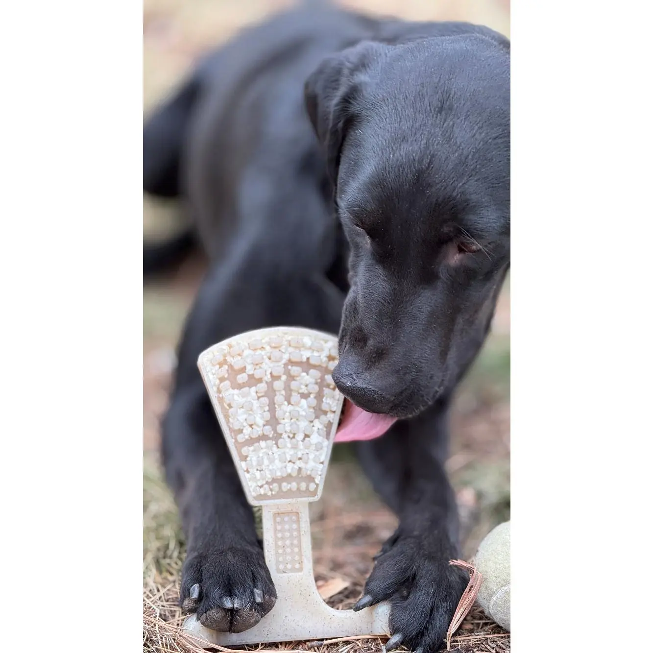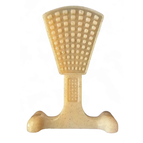 Regular chewing on appropriate nylon toys helps promote dental health by reducing plaque and tartar buildup. The chewing action massages gums and helps clean teeth surfaces, while the textured waffle pattern provides additional cleaning action. The combination of chewing and licking offers comprehensive oral health benefits, contributing to better dental hygiene between professional cleanings.