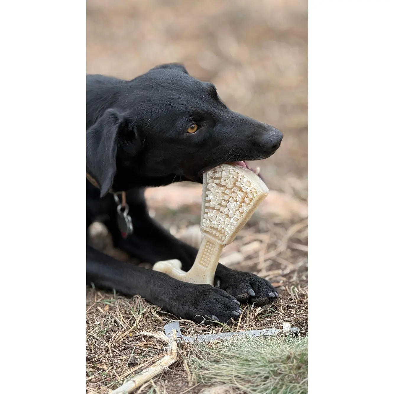 Crafted in the USA from FDA-compliant nylon designed specifically for dog chewing and enrichment. This durable, non-toxic material is BPA-free and built to withstand aggressive chewers. The food-safe nylon is perfect for spreading treats in the enrichment grooves. While no chew toy is indestructible, our nylon products are engineered for durability and long-lasting use with power chewers.