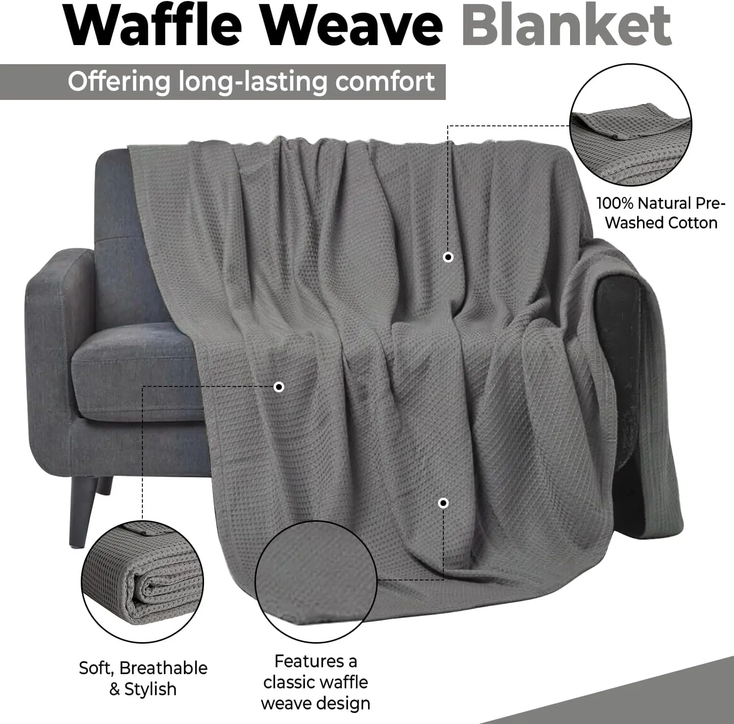 Dark Grey, Throw( 50" x 60")