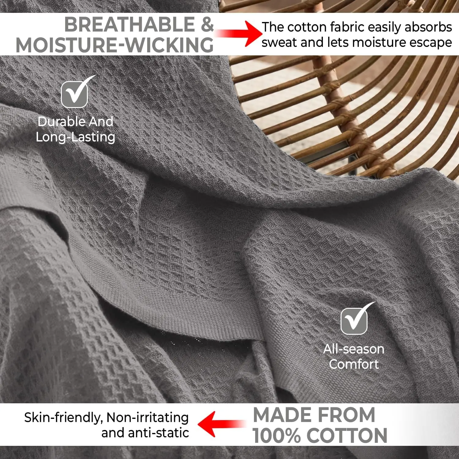They’re Awesome! Lightweight for a cotton blanket! Perfect for Southern California! Washed and dried 3 all at once easily with a soft cotton texture when done! Love them & waaay better than polyester. Buying two more!