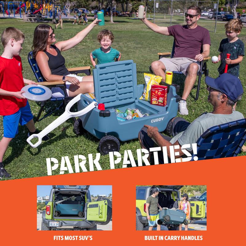 ·VERSATILE FAMILY WAGON: CUDDY Wagon is a new all-purpose kid and gear hauler with an integrated 40 QT capacity cooler with additional 12 QT of under-seat storage; Travel with ease & style to kids sports games, events, parties, picnics, cookouts, and more