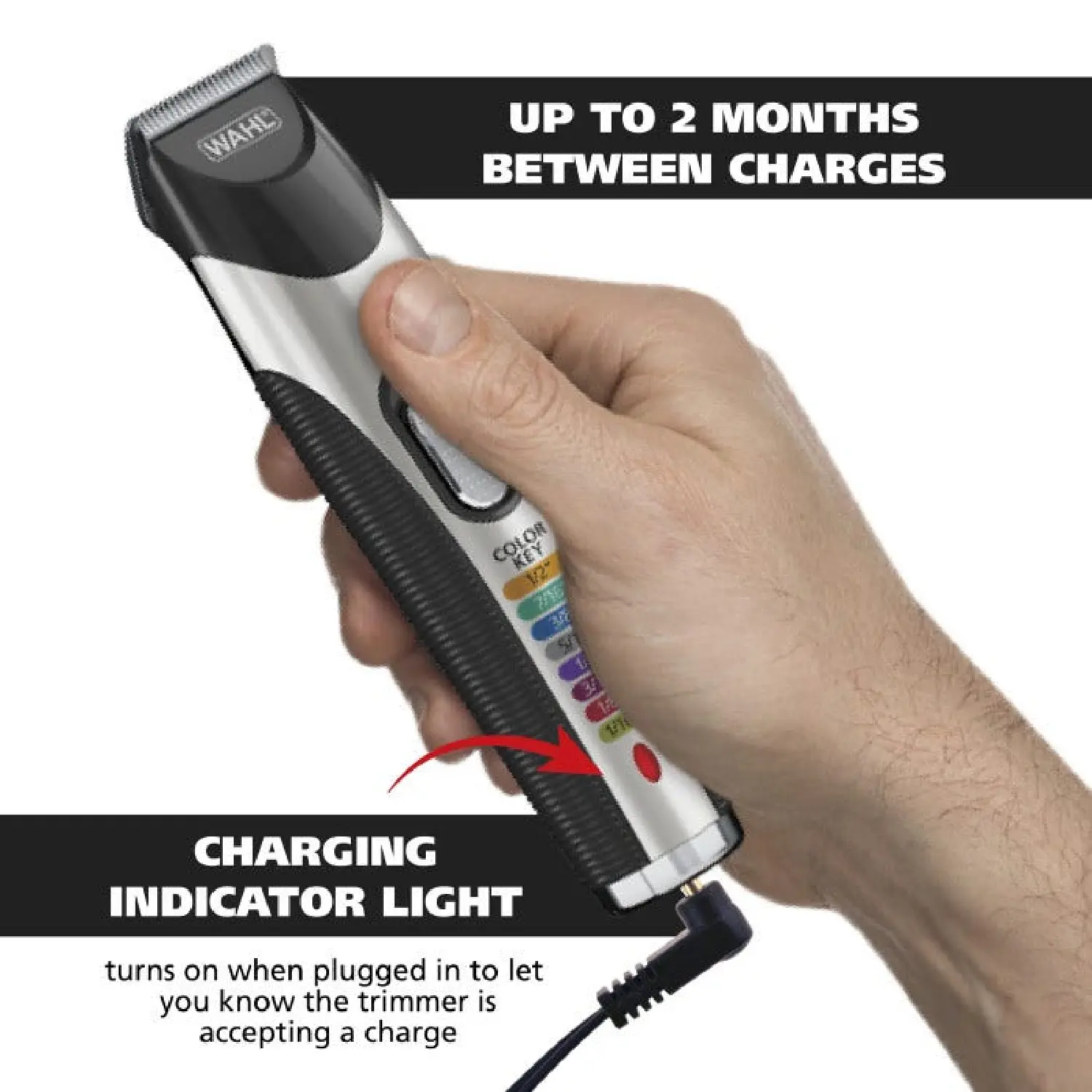 ·Charging Indicator – Never get caught with a dead battery. Once plugged in to charge, this trimmer comes equipped with an indicator light, letting you know that the unit is accepting a charge.