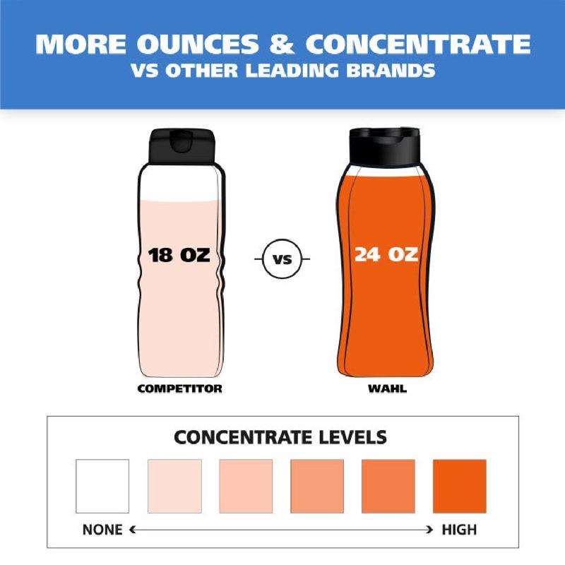 ·Less is More - Wahl has a higher concentrate of a coconut-derived sodding agent, which means you don’t have to use as much product as other dog shampoos. A little shampoo goes a long way and provides a rich lather that’s easy to rinse off.