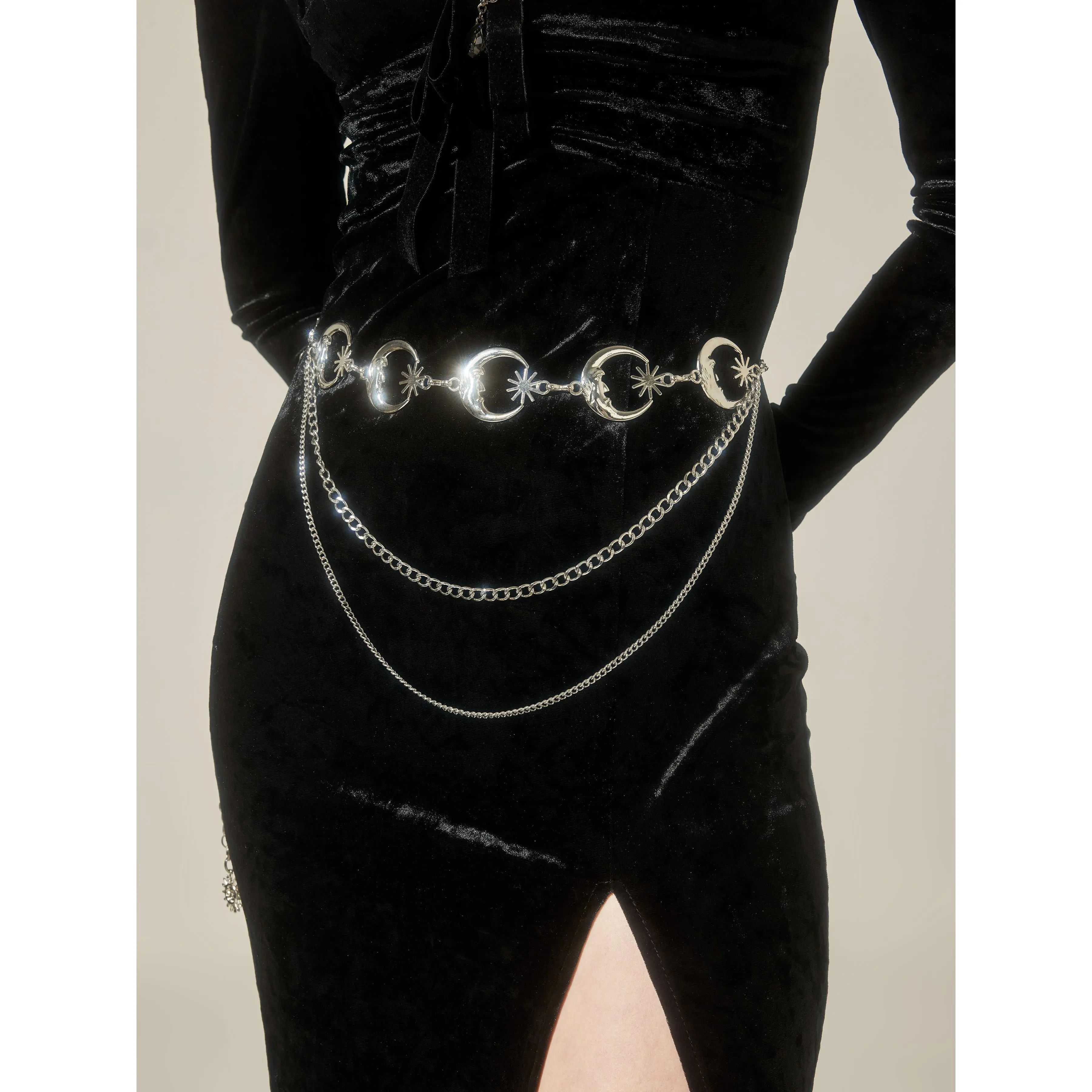 Β·Cider Whimsigoth Star & Moon Layered Waist Chain