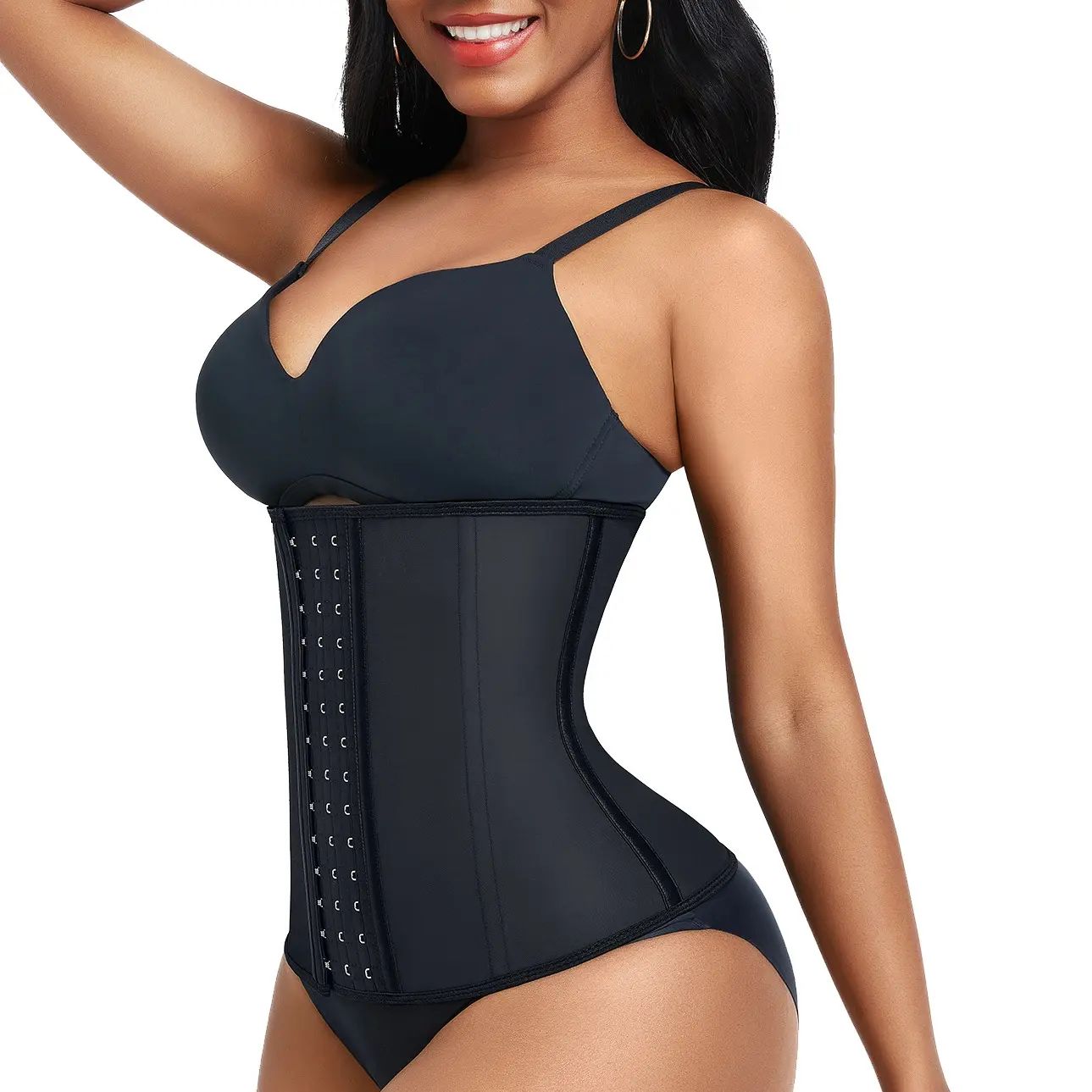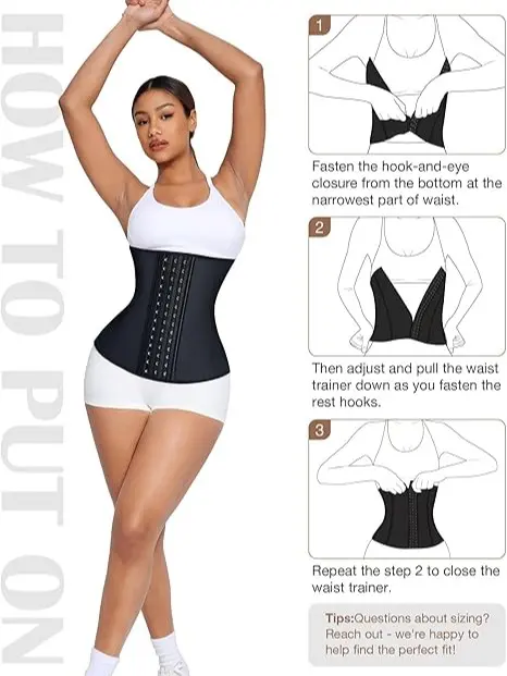 UPGRADED PREMIUM QUALITY WAIST TRAINER-The steel bones with high resistance can prevent curling so you will not reveal your secret. 3/4 rows of hook and eye closures provide flexible sizing.