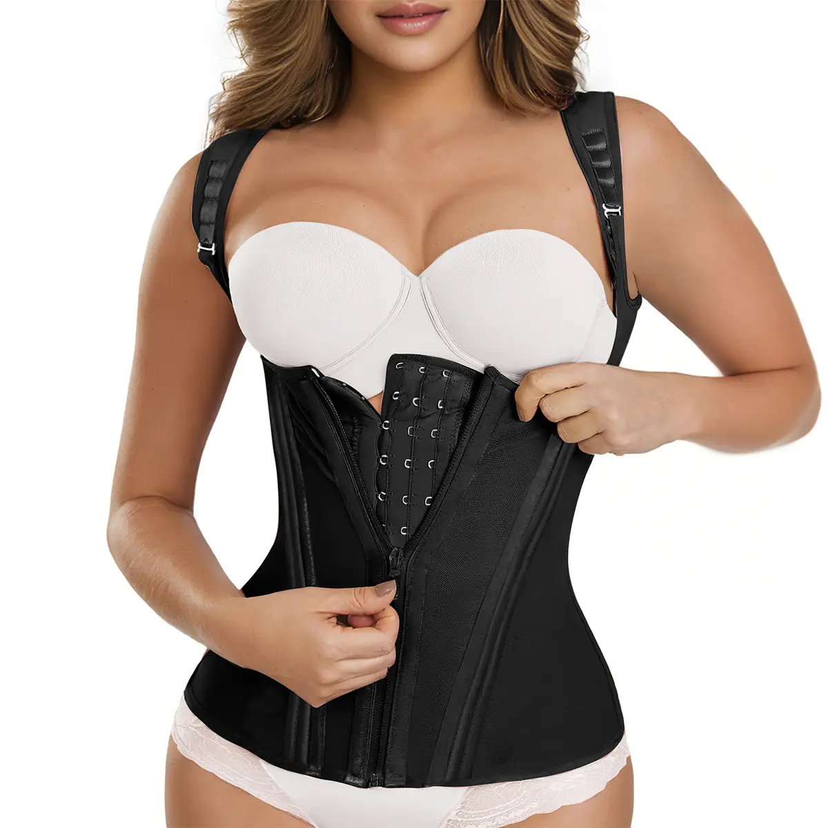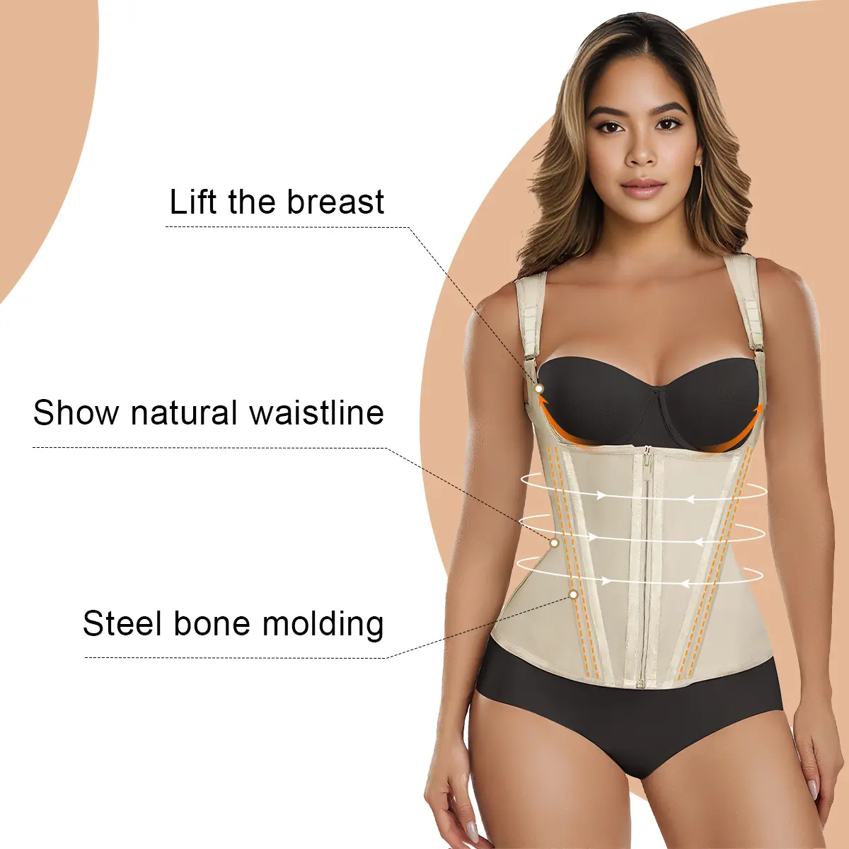 Fit for All Body Types: 5-level bands fit every torso. Flexible steel bones on core area and back offer firm support, shaping a flattering silhouette and maintaining an graceful line during long wear.