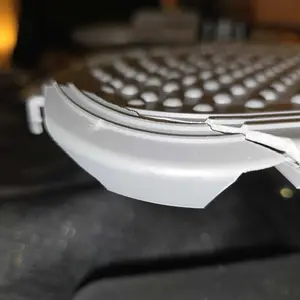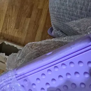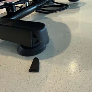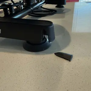 Opened upon receipt and noticed box was damaged. When I took it out of the box, there was a black piece that fell to the floor. The base was broken on the corner as you can see the picture. I ordered one same time as my husband, his is perfect! Mine is damaged.