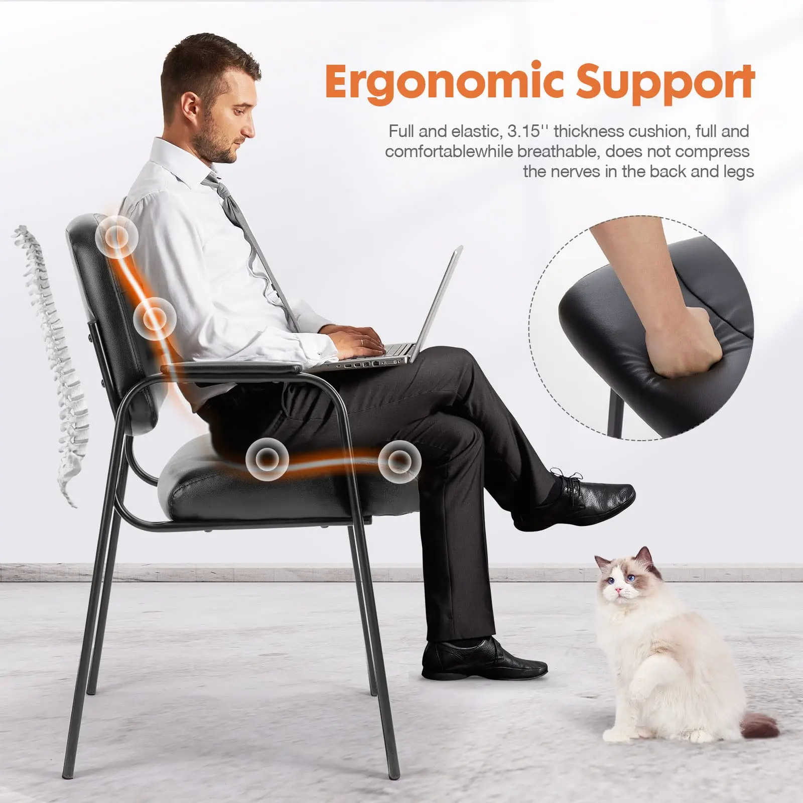 ·【Preferred Leather】- Guest chair with arms uses a high-grade leather, which is not easy to wear, surface waterproof, corrosion-resistant, not easy to change color, skin-friendly, and non-irritating odor. Able to be used indoors and outdoors is easy to clean and long service life.