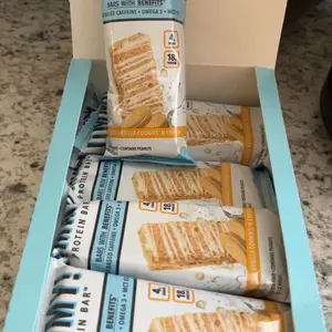 This flavor is so good. It has like a really vanilla cookie like outside, with a squishy vanilla inside. 250 calories per bar and 18g of protein. Very tasty. This is our family's favorite protein bar!