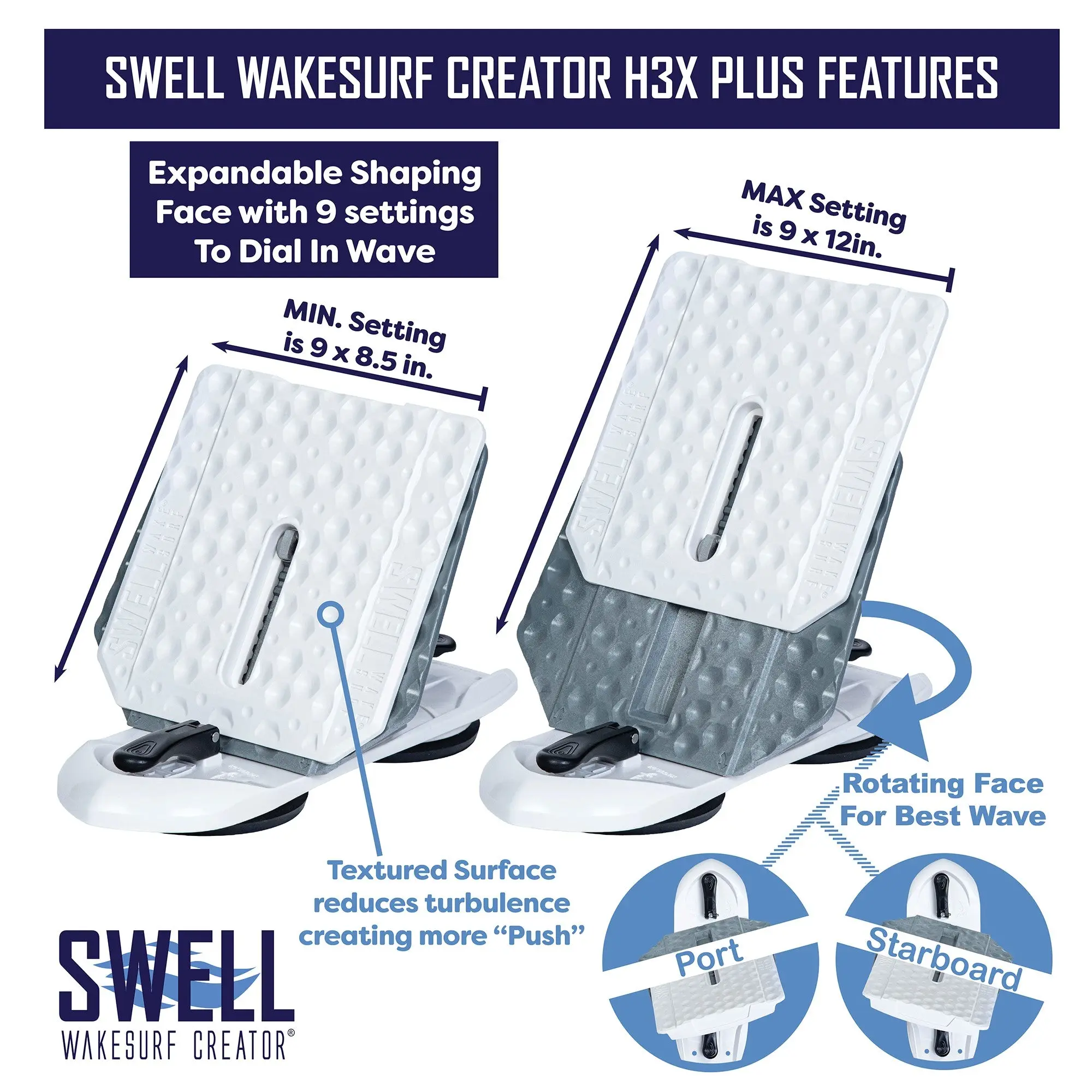 Completely transform your inboard or V-drive wake for wakesurfing with SWELL Wakesurf Creator H3X Plus™. This wake shaper takes everything we have learned, along with flow analysis to prove, scientifically, that this is the best wake shaper you will ever use! The combination of the Creator rotation and hex pattern reduce turbulence (air) in the wave making your surf wave denser, ensuring more push!