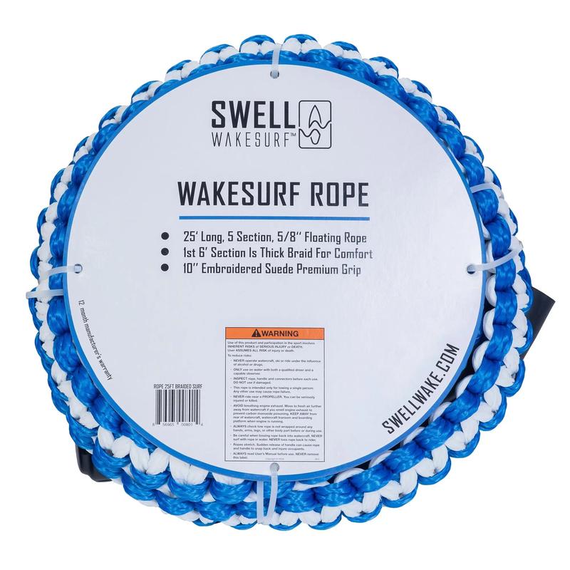 Need the easiest, most versatile rope to learn on? Want to own the best surf rope ever made? Wish that somebody would fix all the nagging little details you see with your current rope? After countless hours of research and refinement, here is the answer! We have found that a 25 ft rope is the perfect size, with removable sections if you prefer a shorter length you have that option too. A 10 inch plush suede handle and padded ends that is just the right width to fit your hands making it easier to get up. You will never need a different wake surf rope.Â