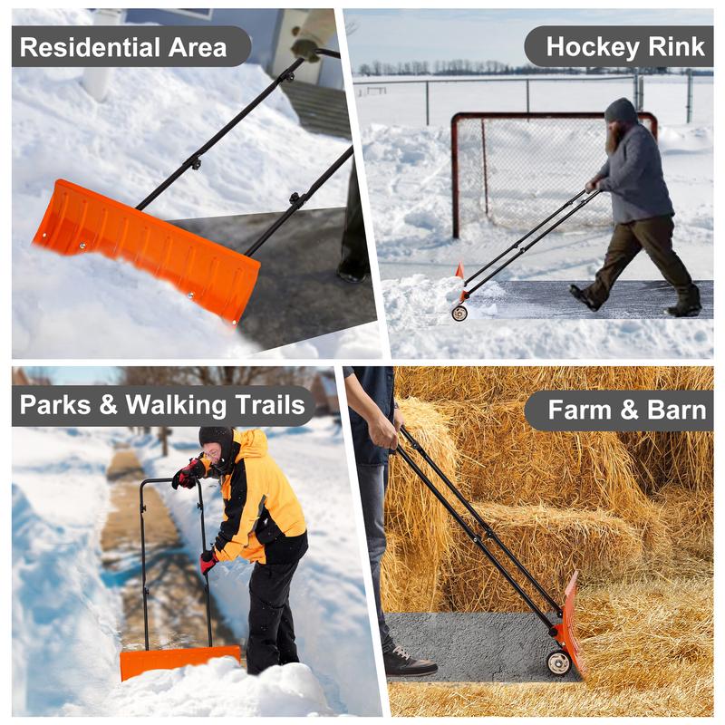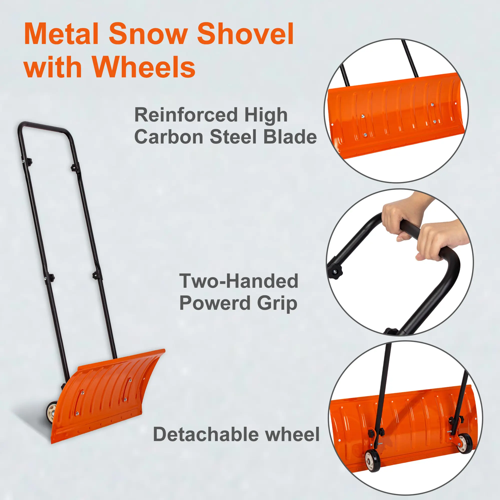 ·Easy to Install & Multipurpose: It's a breeze to assrmble our wheeled metal snow shovel. With an intuitive design and clear instructions, it can be easily installed in less than 10 minutes. Its detachable design allows for convenient storage in your garage, shed, or any corner, rendering it exceptionally practical and space-saving. Our wheeled metal snow shovel is ideal for clearing driveways, paths or pavements and more. It also can be used as a general barn shovel.