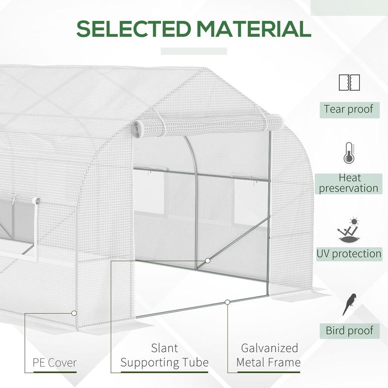 - Zippered, netted roll-up doors for easy access and transport of plants or tools;
