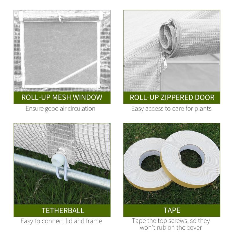 Looking to keep your shovel in the soil year-round? Go with the greenhouse. Outsunny offers an easy-to-assemble greenhouse you can place outside on your patio or backyard. The garden just got an upgrade. Nurse new seedlings or go tropical. Quickly control heat and humidity with a net-protected door or seal it in when you walk in. The windows offer slower ventilation and an excellent way to view progress from the outside. Rain, cold, wind, UV, weeds, and wild animals are worries of the past.