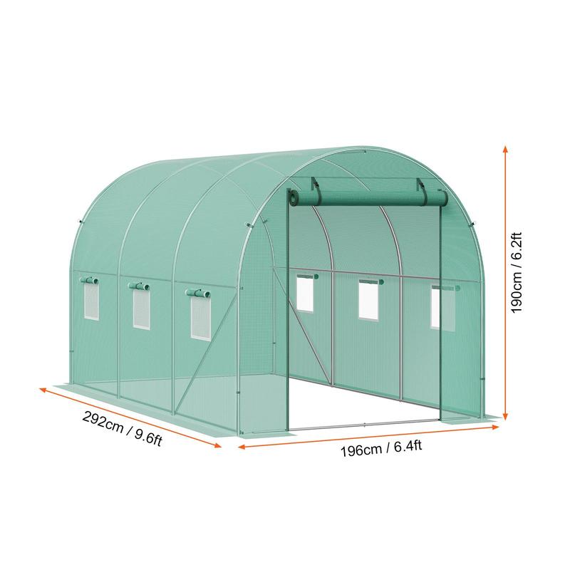 VEVOR Walk-in Tunnel Greenhouse,  9.6x6.4x6.2 ft Hoop House Greenhouse Tunnel, Plant Hot House with Galvanized Steel Frame, Green PE Cover, Roll-up Zipper Door and 6 Windows for Outdoor