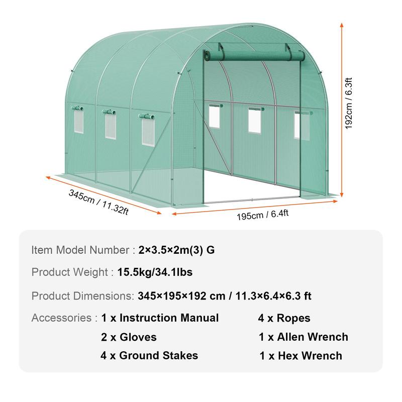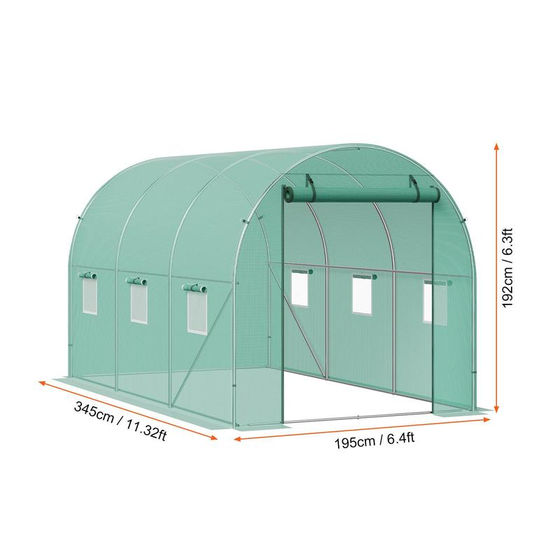 • Spacious Walk-In Design: With a generous 11.32x6.40x6.30 ft space, this walk-in greenhouse tunnel is perfect for growing a variety of plants. Easily access and maintain your plants, or set up multiple plant shelves to meet both home gardening and commercial planting needs.