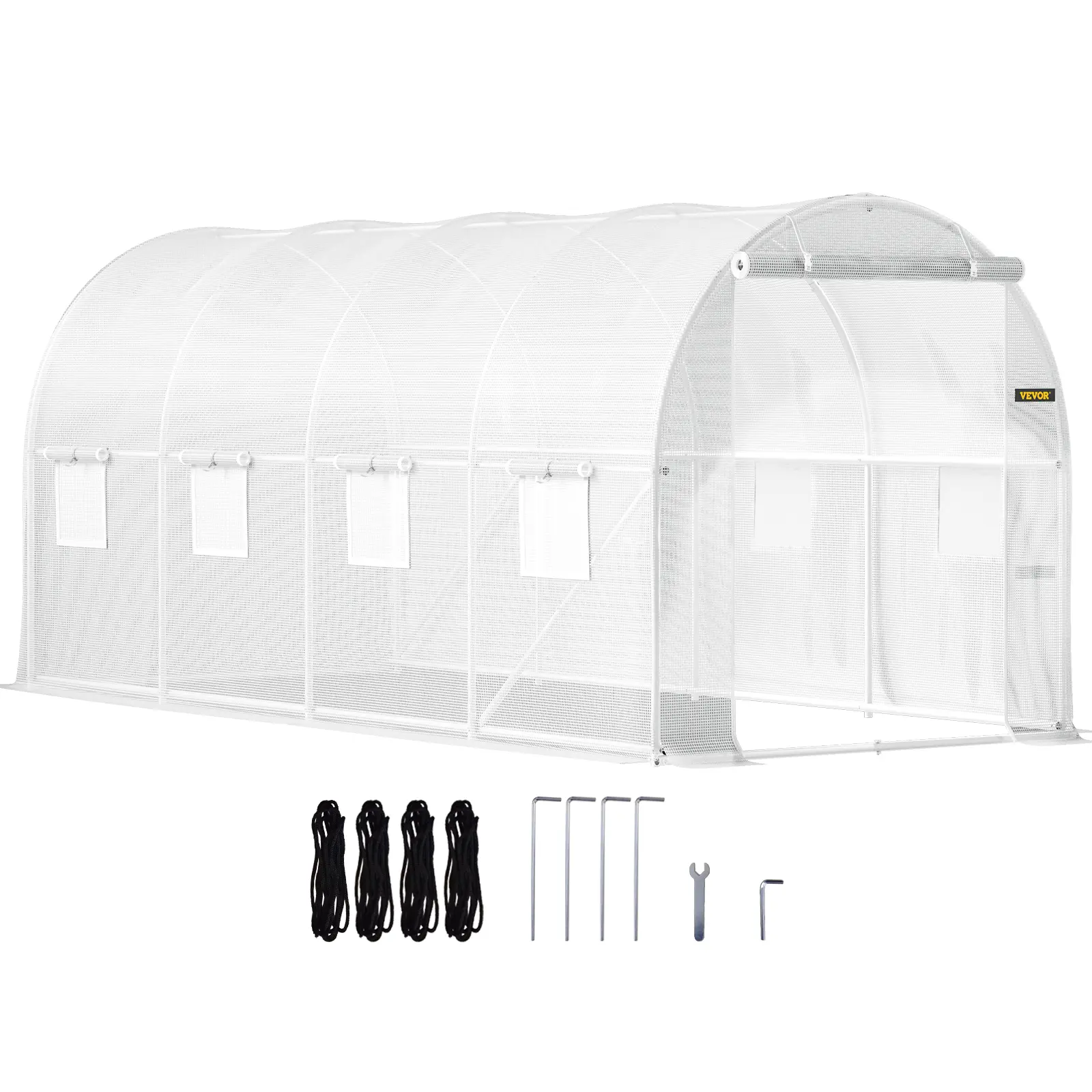 • All Tools Included: The hoop house greenhouse is easy to assemble with connectors, and screw covers can prevent scratches and rust.Includes 4 ropes, stakes, and guy ropes for added security, stability, and strength. Note: Do not tighten screws until the final position is confirmed.