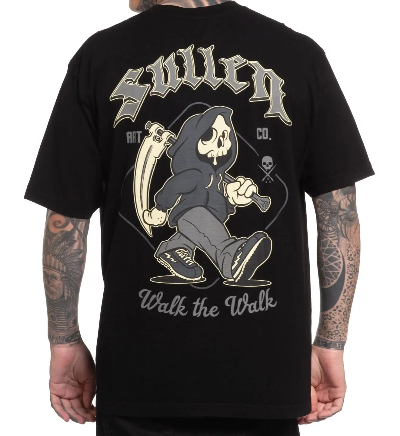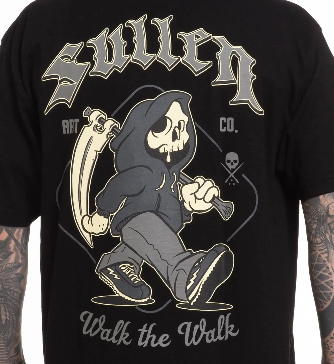 Our hooded Sully doesn’t talk about it—he clocks in and keeps moving. Clean chest hit up front; big cartoon back with that marching grim and a mean scythe swing. Built for daily rotation on our oversized 1 Ton tee. Oversized fit consider sizing down.