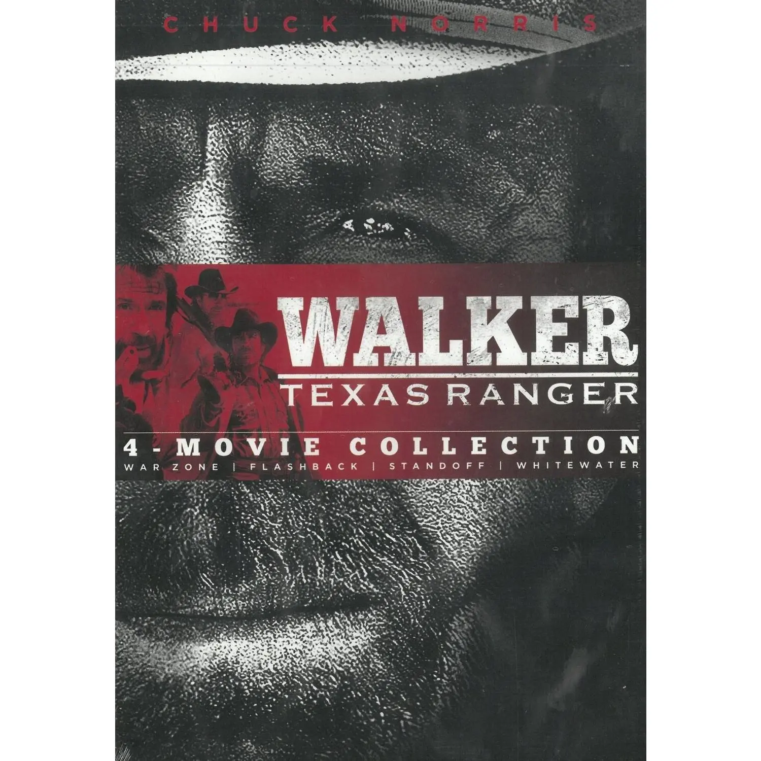 Action-movie legend Chuck Norris stars as the iconic lawman who delivers Old West justice to modern-day criminals in Walker, Texas Ranger: 4-Movie Collection. This exciting collection features four of Walker's most memorable adventures. See Walker avenge his partner's death at the hands of merciless bank robbers in War Zone, track down the hidden treasure of a famed Texas Ranger in Flashback, protect a Mexican politician from a contract killer in Standoff, and confronta