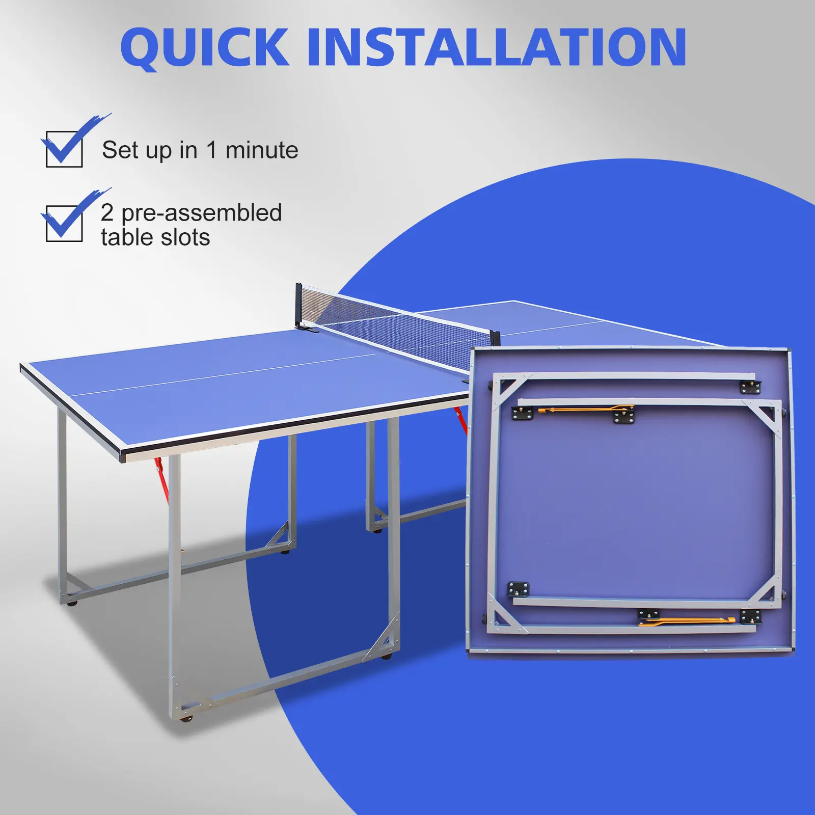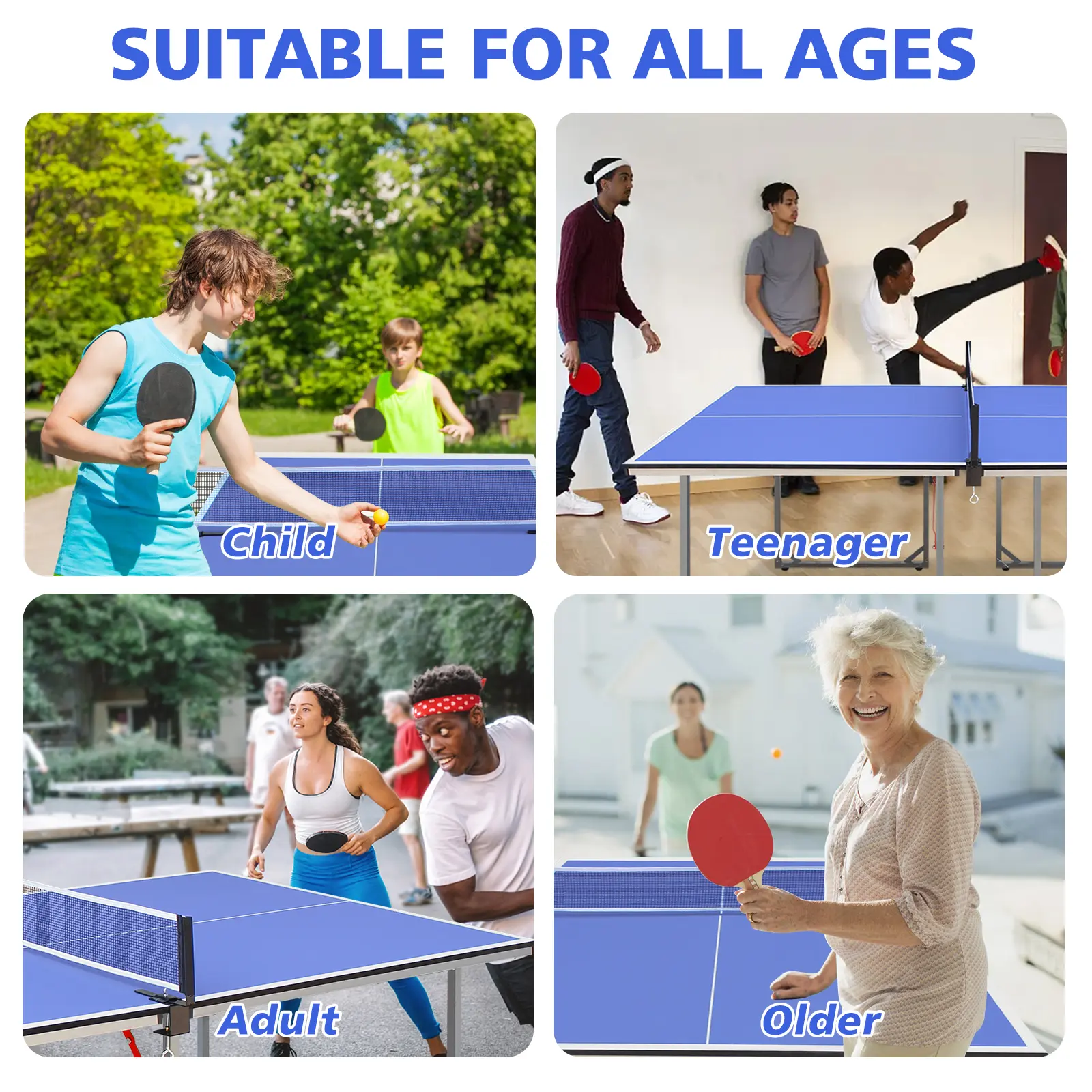 ·【EASY STORAGE】 This table tennis table is easy to store and takes up little space, making it ideal for use in apartments, backyards, garages, basements, small family gyms, etc. You can accompany your family and kids to play together, or you can enjoy a table tennis match when your friends come to visit.