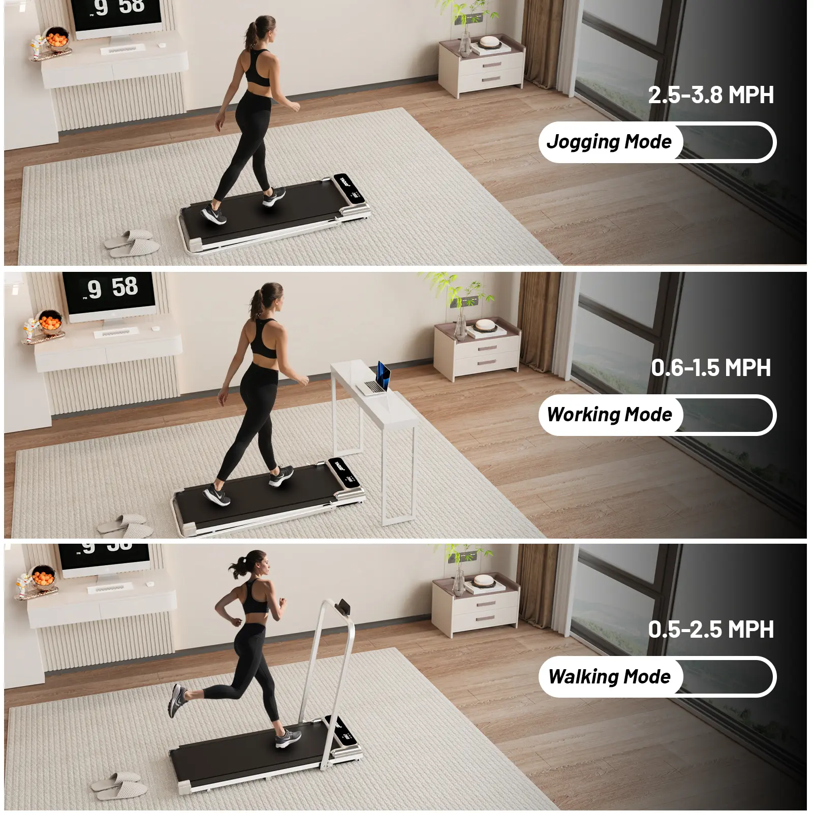· Take Your Workout Indoors with Ease Say goodbye to bad weather and hello to convenient home fitness! This sleek walking pad features a max speed of 3.8 MPH, making it perfect for both light jogging and brisk walking.