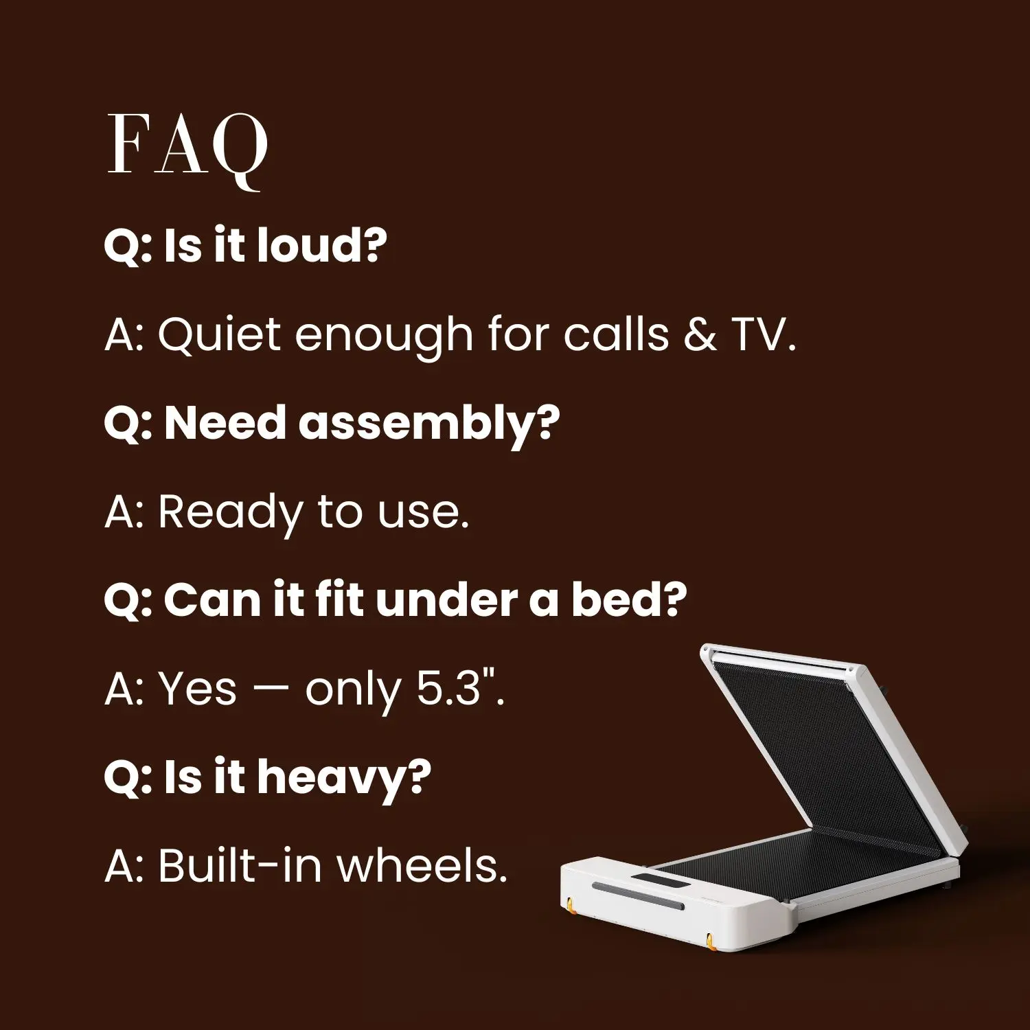 I loveeeee this walking pad! I’ve been using it since it first arrived & it’s quiet/compact compared to competitors. Once I’m done, I just fold it up and stow it away.