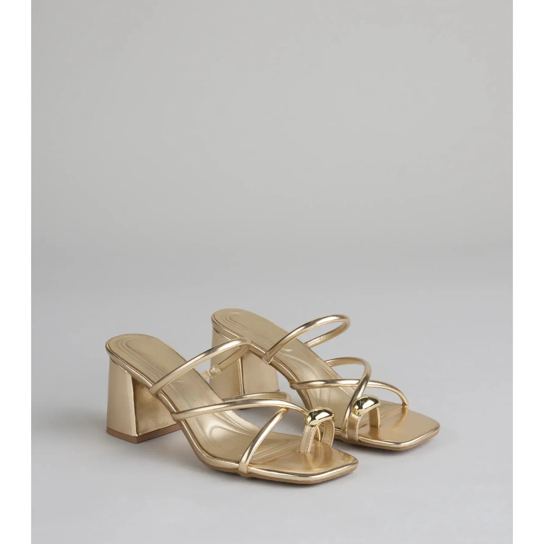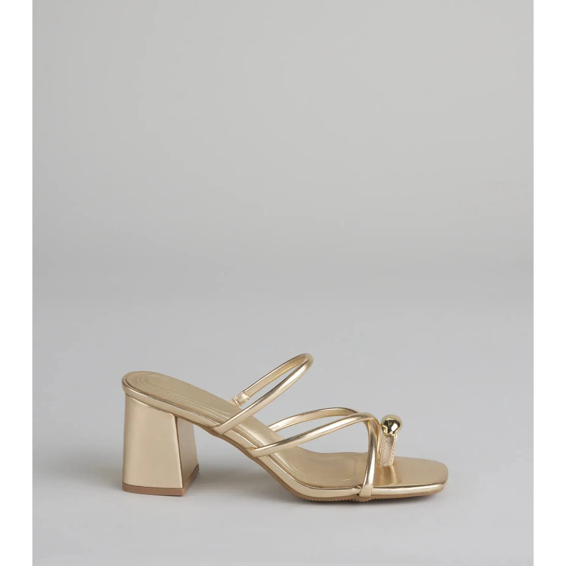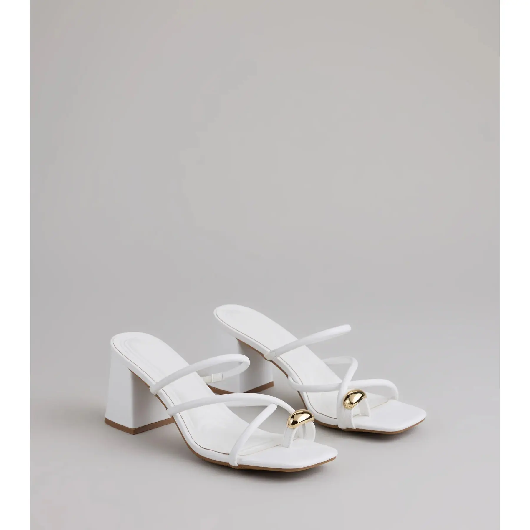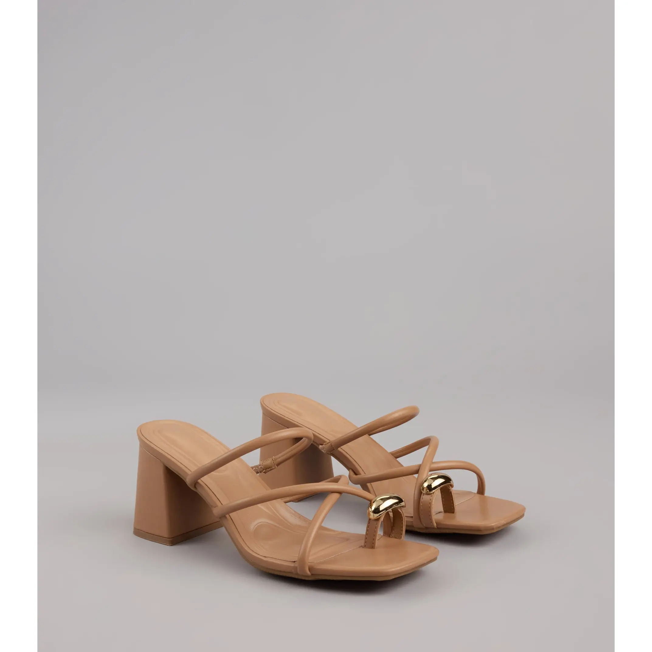 Minimal straps, max impact. These block heel mules are made for everything from rooftop drinks to girls’ night glam, with a shiny toe ring detail that adds a unique flair.