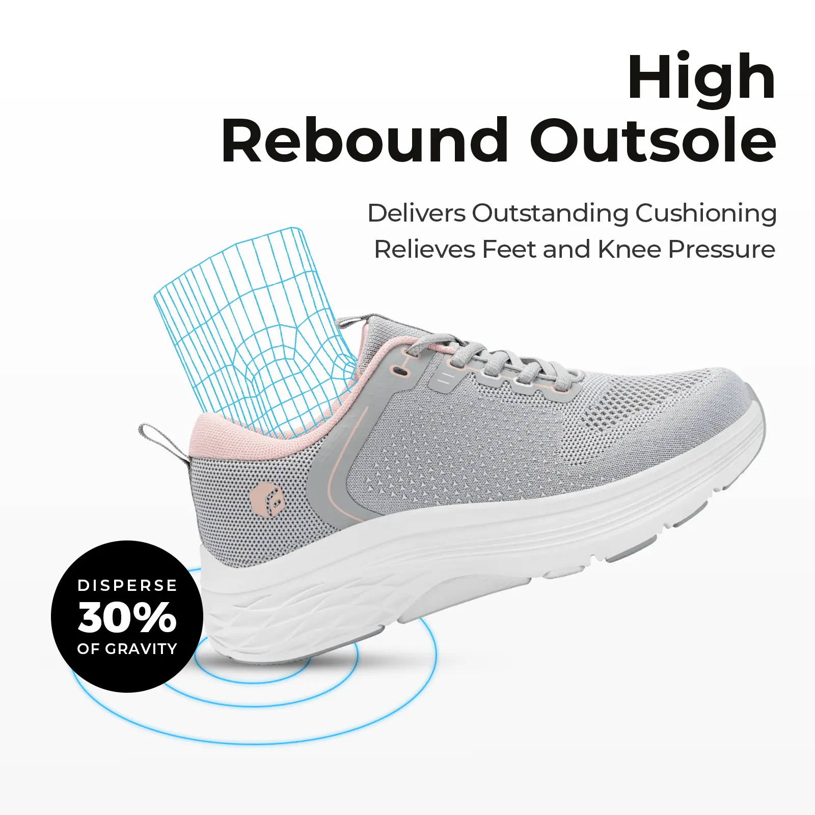 ·5cm extra-thick, eco-friendly, high-elastic EVA sole for optimal rebound, shock absorption, and slip resistance.