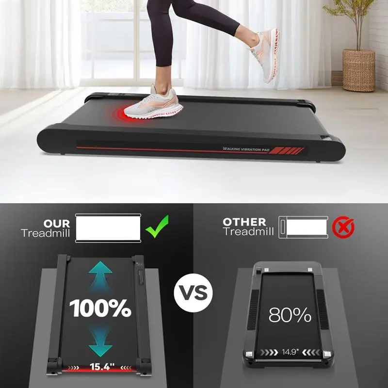 So much better than my first walking pad this one doesn’t make me trip/ bout kill myself. The vibration plate is an added bonus. Highly recommend this for anyone looking at walking pads.