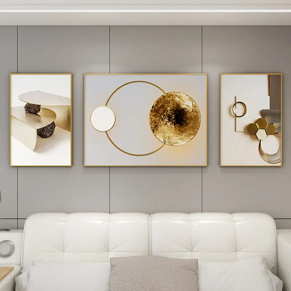 Use this graphic art print to add modern focus to any layout. This work shows a contrasting abstract geometry image. This design is modern style, printed on nontoxic canvas, and embedded in the drawing frame of aviation grade aluminum alloy. It is suitable for your home, easy to install and high in reuse rate. Plus, this wall art painting art is also a good gift choice.